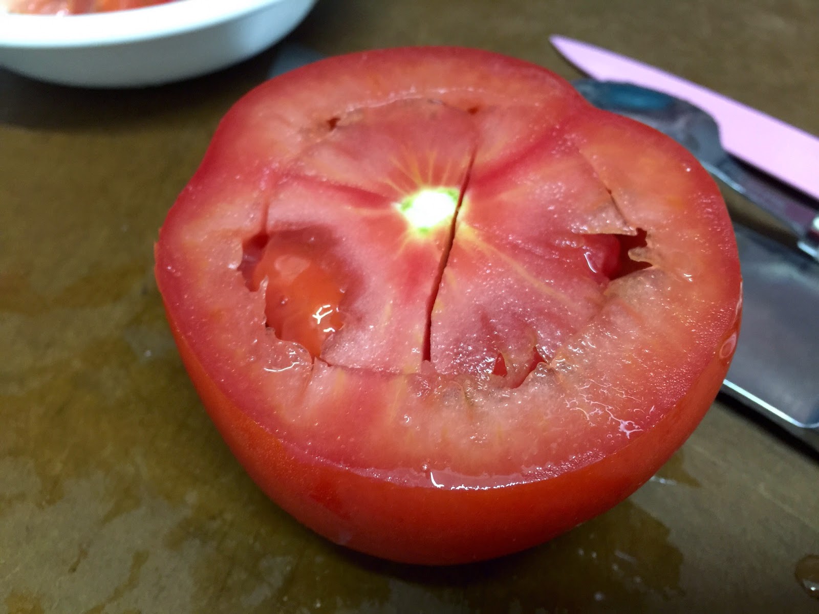 蕃茄切去頂位置留用