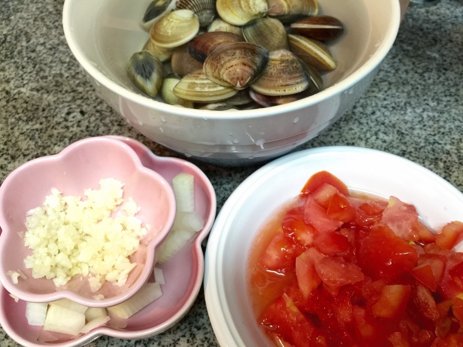 另外, 淨下的茄肉, 就做了【白酒鮮茄煮蜆意粉】