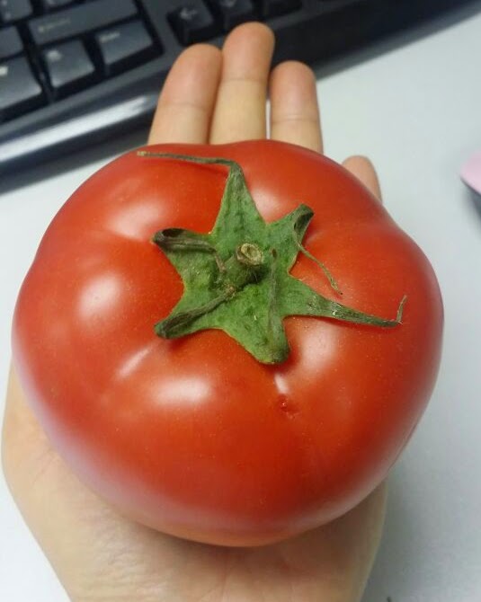 夏天到, 蔬菜水果都又大又新鮮, 種類也很多, 而且吃多點蔬菜對身體也是很好的。 但我家小王總是不喜歡吃蔬菜, 生果還可以呢。 所以就出點心思, 把家中的淨菜都來做個大蕃茄盒子。