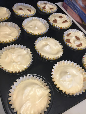 用刮刀將1/3的蛋白霜拌入蛋黃麵糊, 完全拌勻好就將餘下的蛋白霜加進, 用刮刀把從下往上番拌, 確保沒有蛋黃糊沉底, 再分入杯子上, 每杯7分滿就好了 (動作要快而輕, 以免把蛋白霜的泡泡消滅)
