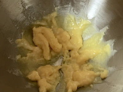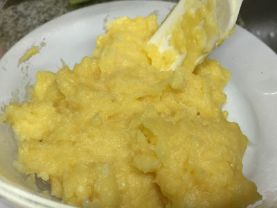 爐煮 : 拌勻材料放小煲內,以小火一直攪拌煮成糊狀,放涼備用