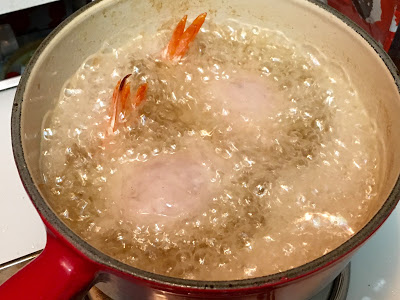 我很少在家開油鑊炸食物, 因為有AIR FRYER, 但因為是【荔芋蝦】, 我冇乜信心不用油炸而可以起酥, 所以都是跳進火海, 開一鍋小小的油, 夠炸2隻就可以了。 家中的藍蝦還有2盒, 所以買來芋頭做【荔芋蝦】, 一來我喜歡冬天吃芋頭, 二來這道菜真的很久沒做過, 材料家中都齊備,不用花費買一大堆回來。