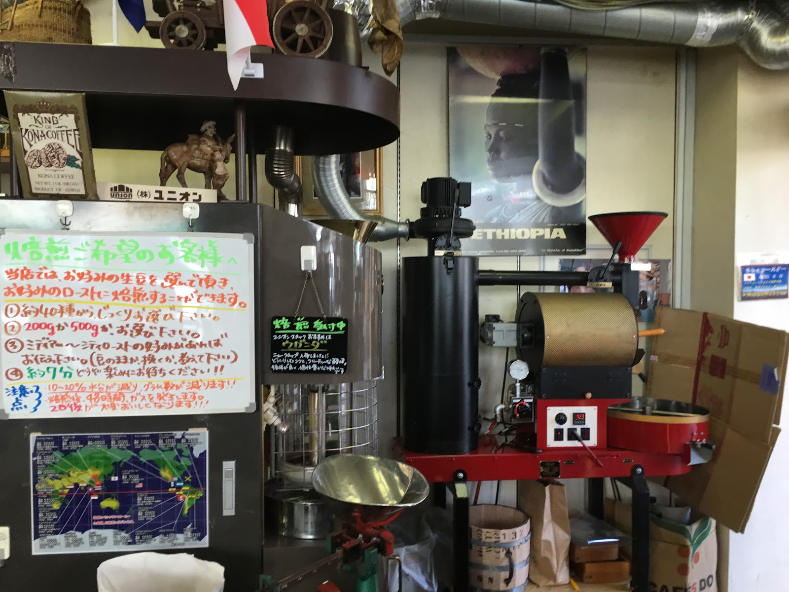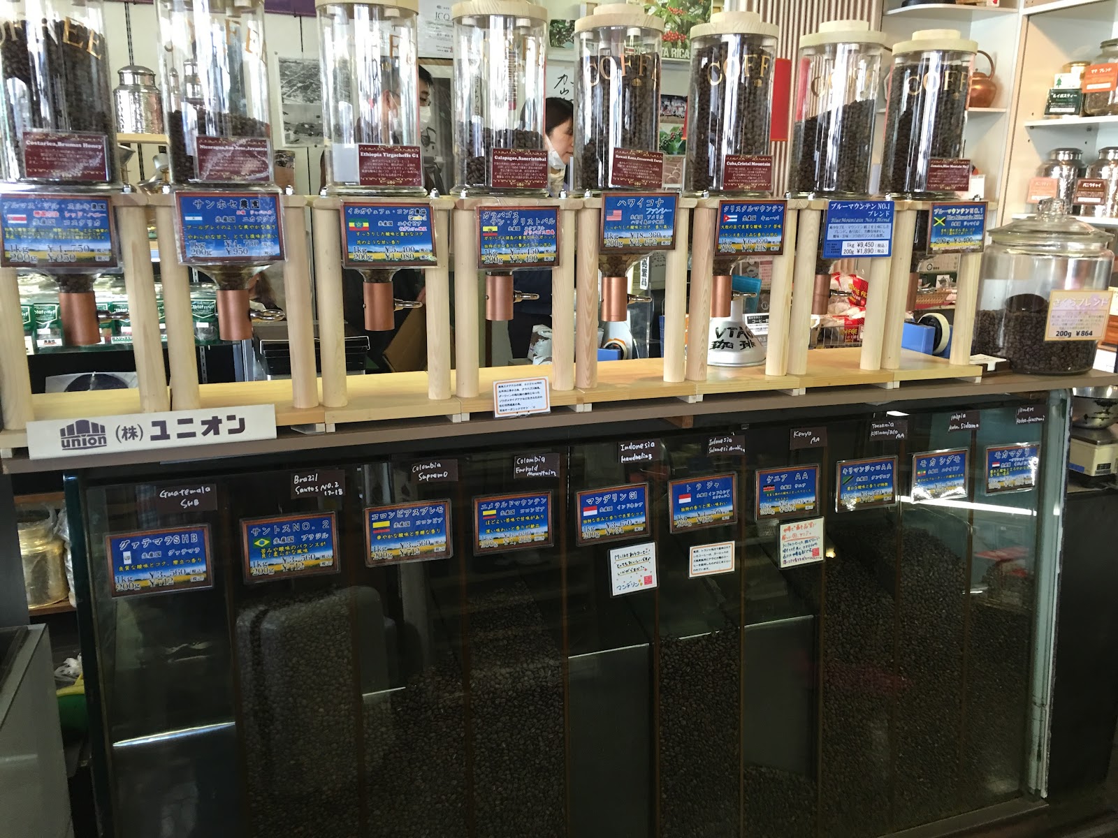 UNION (株式会社ユニオン)店分兩邊,一邊專門為客人提供烘培咖啡豆、研磨等,另一邊專賣工具、杯具、壺具等。。。