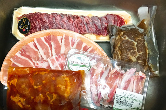 走到尖沙咀, 買了韓牛、牛筋骨、雞肉、單骨雞亦、豚肉