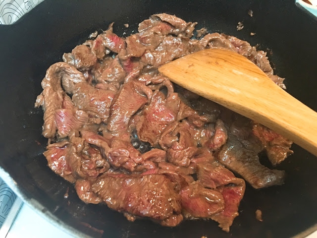 沙嗲牛肉要多汁才好味, 做來撈烏冬, 或是加在公仔麵上也可以的。
