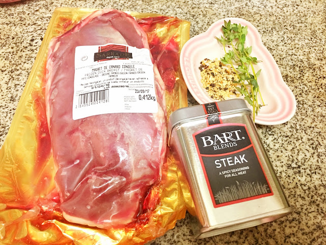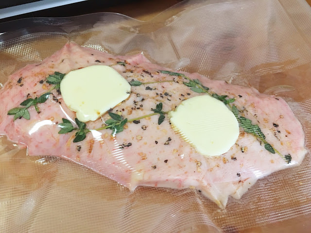 底面灑上SEASONING 及THYME, 加 2 片牛油, 放入真空袋