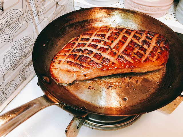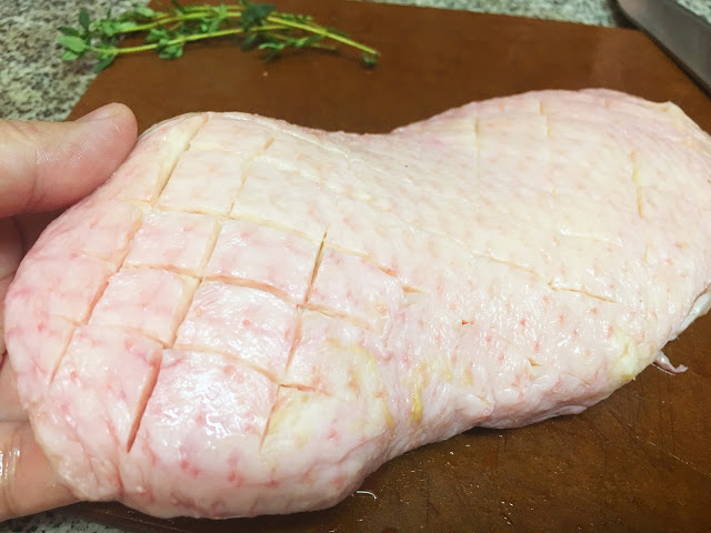 先煎皮 (油都不用下, 因為鴨胸標油很多的)