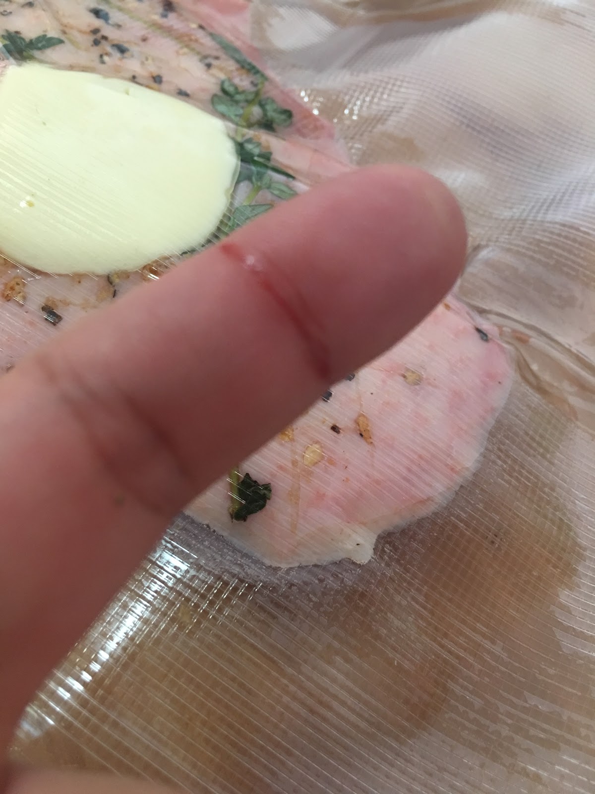 底面灑上SEASONING 及THYME, 加 2 片牛油, 放入真空袋