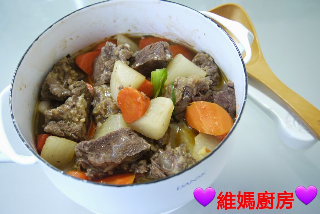 【咖哩牛腩煲】Le Creuset 燜到淋配藍象辣呼呼2014年07月27日 | 累積瀏覽 2803  材料: 牛坑腩 1斤 薯仔2個 甘筍 1條 乾蔥 2粒 香果 2粒 八角 2粒 香葉2片 調味: 藍象紅咖哩醬 3湯匙 鹽1茶匙 咖喱磚 1格 做法: 1.牛腩全件出水10分鐘,沖水洗淨(不用切件) 2.把香料類及牛腩放鍋中,加入蓋面清水,煮至材料滾起。 3.轉小火燜約1小時,熄火,用餘溫焗至凍再切件 4.薯仔及甘筍去皮切件,以少許油爆炒,至表面轉微金黃色,下咖哩醬 5.加入牛腩件連湯,煮至材料滾起加咖哩磚,燜約20分鐘至材料腍身即成 &... 看全文 材料: 牛坑腩 1斤 薯仔2個 甘筍 1條 乾蔥 2粒 香果 2粒 八角 2粒 香葉2片 調味: 藍象紅咖哩醬 3湯匙 鹽1茶匙 咖喱磚 1格 做法: 1.牛腩全件出水10分鐘,沖水洗淨(不用切件) 2.把香料類及牛腩放鍋中,加入蓋面清水,煮至材料滾起。 3.轉小火燜約1小時,熄火,用餘溫焗至凍再切件 4.薯仔及甘筍去皮切件,以少許油爆炒,至表面轉微金黃色,下咖哩醬 5.加入牛腩件連湯,煮至材料滾起加咖哩磚,燜約20分鐘至材料腍身即成 &... 看全文