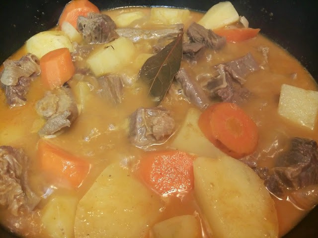 材料: 牛坑腩 1斤 薯仔2個 甘筍 1條 乾蔥 2粒 香果 2粒 八角 2粒 香葉2片 調味: 藍象紅咖哩醬 3湯匙 鹽1茶匙 咖喱磚 1格 做法: 1.牛腩全件出水10分鐘,沖水洗淨(不用切件) 2.把香料類及牛腩放鍋中,加入蓋面清水,煮至材料滾起。 3.轉小火燜約1小時,熄火,用餘溫焗至凍再切件 4.薯仔及甘筍去皮切件,以少許油爆炒,至表面轉微金黃色,下咖哩醬 5.加入牛腩件連湯,煮至材料滾起加咖哩磚,燜約20分鐘至材料腍身即成 &... 看全文 -