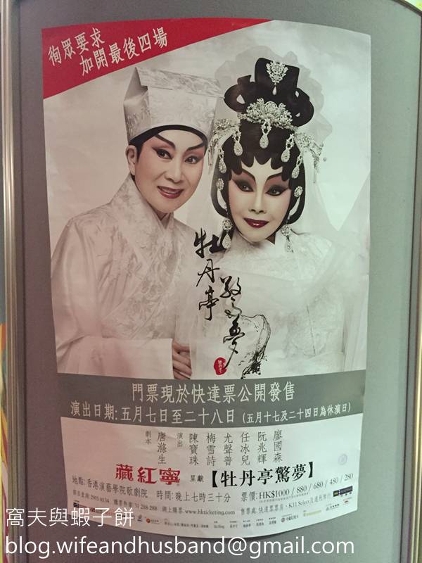 窩夫是晚做乖乖女,陪媽媽去灣仔演藝學院看《 牡丹亭驚夢》。 陳寶珠主演的粵劇不易購票,窩夫的兩張480元門票是在一月尾買的。 演藝學院外沒有掛上宣傳海報,裡面可以找到影迷們做的巨型橫額。 早前感受過黎明迷的熱情,是晚感受一下早一代的寶珠迷是如何支持他們的偶像,因為人太多,拍不到那一排用牡丹花做的花牌。 進場了,座位在正中央,看得很清楚,媽媽很滿意。場刊製作認真,非常精美。 約晚上7時30分開場,完... 看全文 -