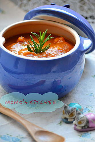 隔去龍蝦殼~將蔬菜類食材用攪拌器打爛~~再加入適量龍蝦上湯煮至杰身~~