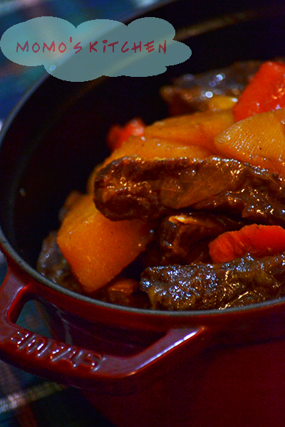 <<蕃茄炆牛肋條>> 今日天氣真係好差~一個朝早…又黃又紅又黑..網上面瘋傳嘅水浸相片~真係睇到都嚇一嚇~!踏入雨季~真係要小心呢d天氣呢~! 天氣唔好少咗去街市~就喺超市買咗d牛肋條返家炆算喇~用咗蕃茄炆~酸酸哋咁幾開胃~大家可以一試喔~! 材料: 牛肋條600g, 紅蘿蔔一條(去皮切大件) , 洋蔥一個(去衣切大件),薯仔兩個(去皮切大件) 材料: 紅酒250ML, 上湯500ML 調味料:... 看全文 -