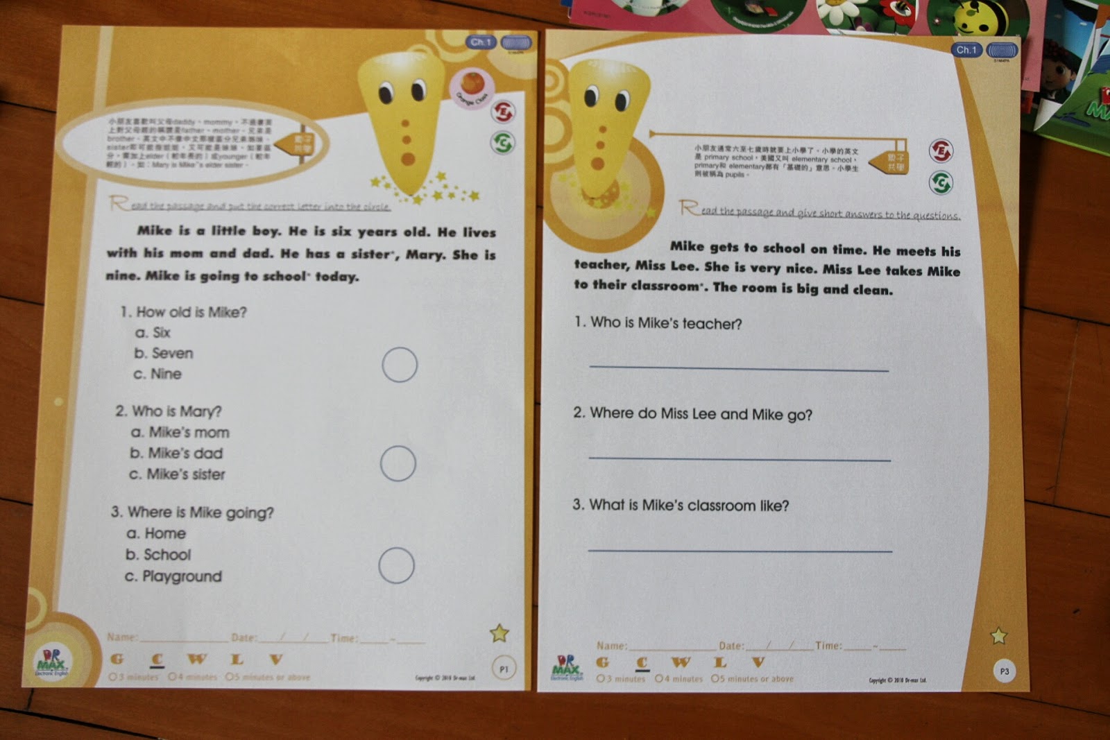 因此,在小朋友能力範圍內,我很支持給小朋友預習較深語文/數學的;而這份英文閱讀理解練習Ch.1,已有閱讀能力的Matthew剛好答得到,令媽媽很開心!當然之後有較深的練習,要慢慢教導;但總之這突破了一貫幼稚園連線、配對、畫圈等簡易練習,已經很不錯。