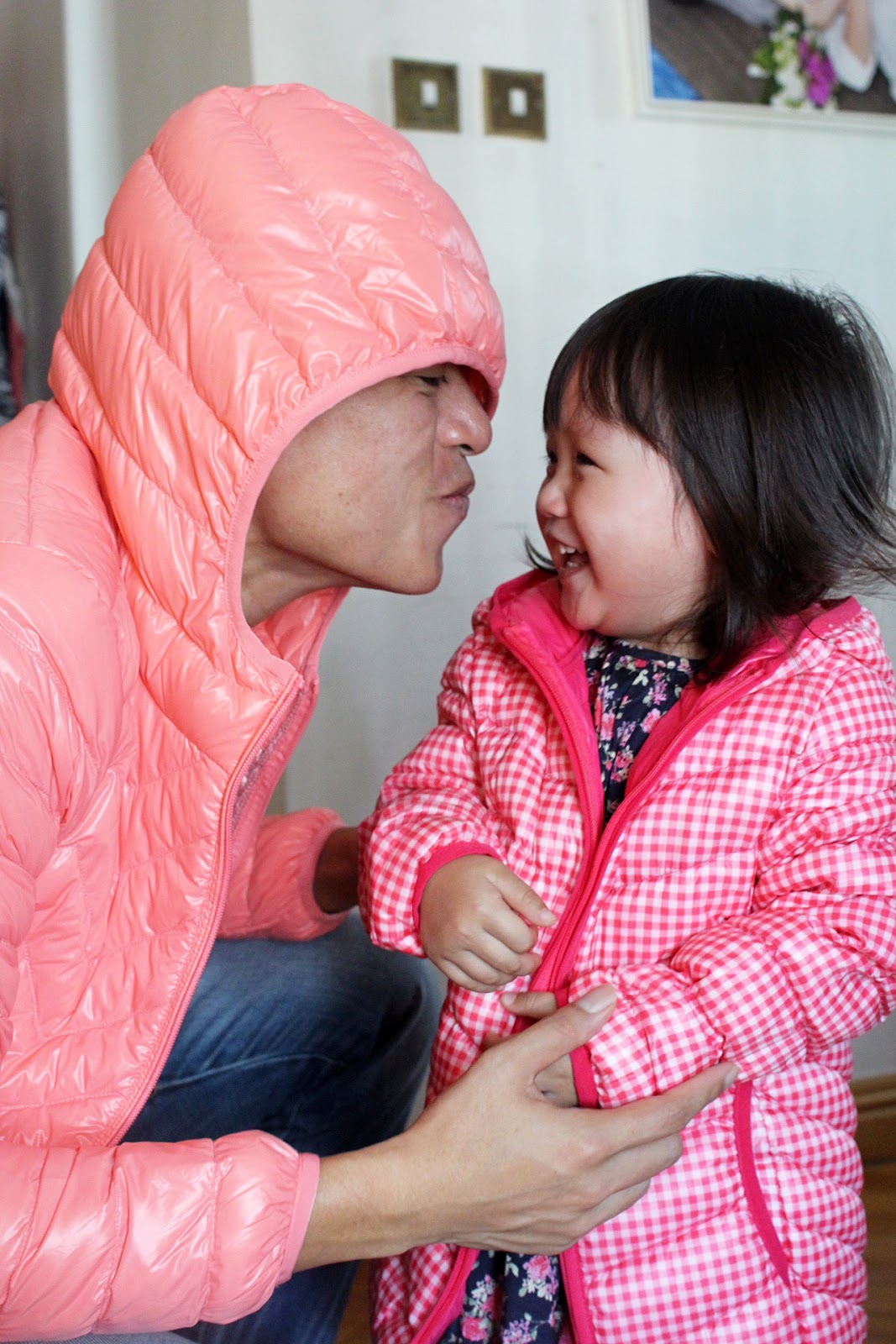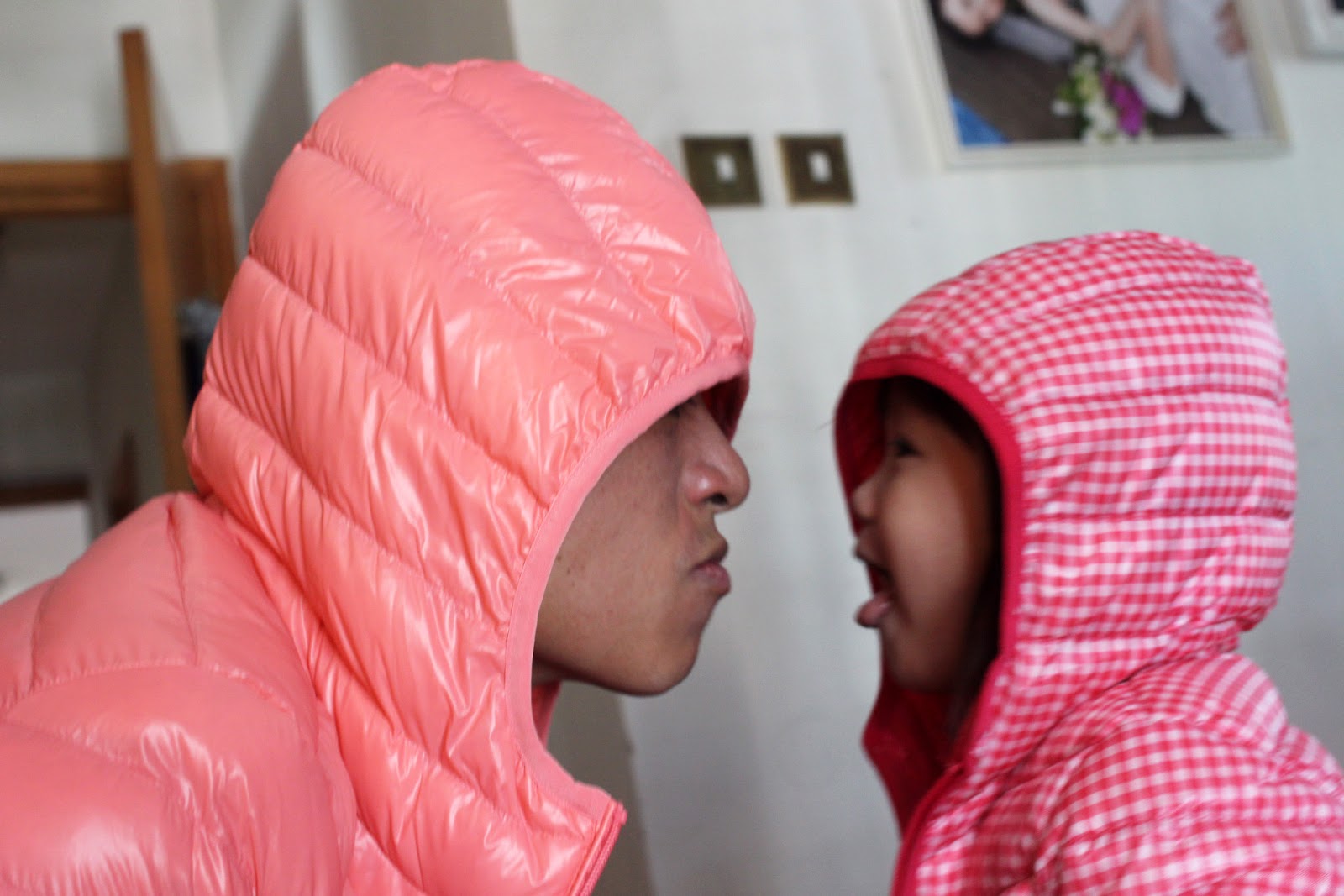 爸爸最最最受不住前世情人的哀求了,明明熱到在家裡要穿背心的他,為博妹妹一笑,毅然穿上屬於媽媽尺碼、粉紅色的羽絨外套!@@