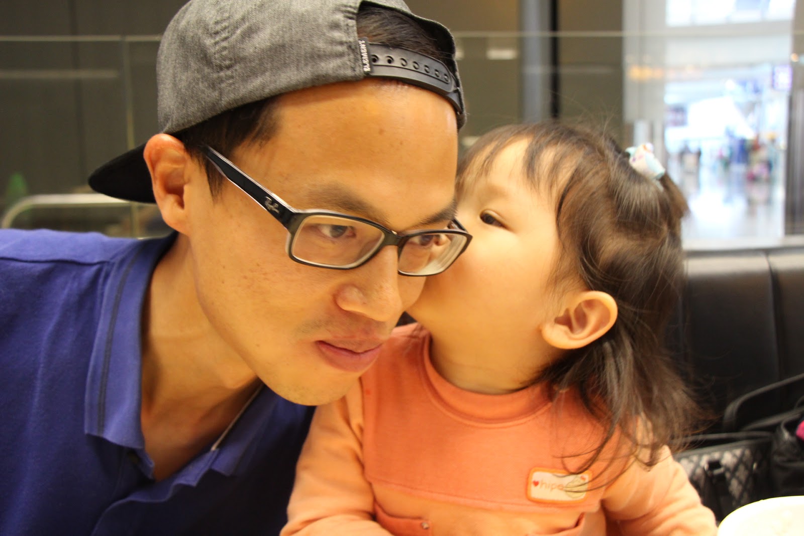 加上Matthew平日間中都有提及叔叔(Matthew十分喜歡叔叔的,但要上學未能接機了),結果在機場的早餐中,酷似爺爺的叔叔一出動麵包攻勢,為食Chloe就親下去了!好sweet~ =)