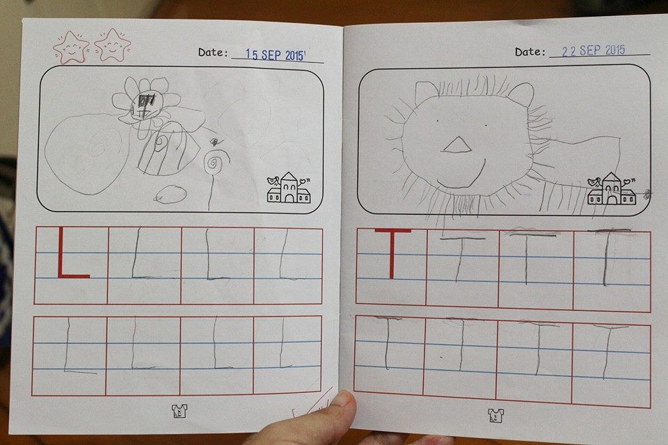這也是之前曾在 Facebook 分享的功課照,Matthew對寫字及畫畫都很有要求呢!甜魔媽媽通常會將一個字的結構拆解告訴他,讓他易於掌握;如「M」及「W」,會教他先畫五點,然後再聯線,久而久之他就能取到平衡美感了。