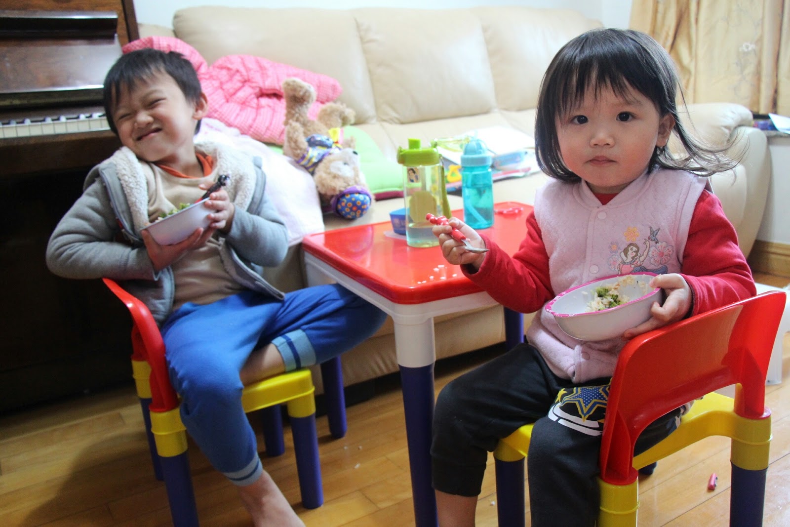 如果天氣不太差,早餐後多數會帶妹妹去遊樂場玩一陣,然後買點簡單補給品就回家,開始準備Matthew的午餐,然後12:20pm就接校巴了。雖然兩隻喜愛街食多於住家飯,幸好在他們對蛋及西蘭花情有獨鍾,煲個飯、煎個蛋再恰個西蘭花就是一頓,非常方便又快捷!間中嫲嫲還會送來現成煮好的魚肉、三文魚等,就更好了。當然,事後要幫忙清理還有洗碗啦~