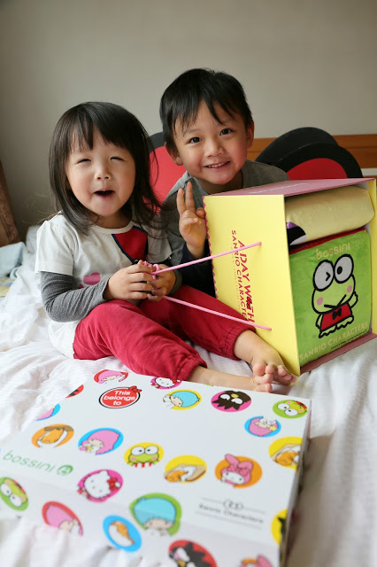繼上回型格冷酷的 STARS WARS 系列,今次的 Sanrio 系統明顯走可愛風,連盛載的禮盒也是 Hello Kitty 的紅色蝴蝶結!所以爸爸這次沒份,但小兄妹就更加喜歡又樂透,呵呵~