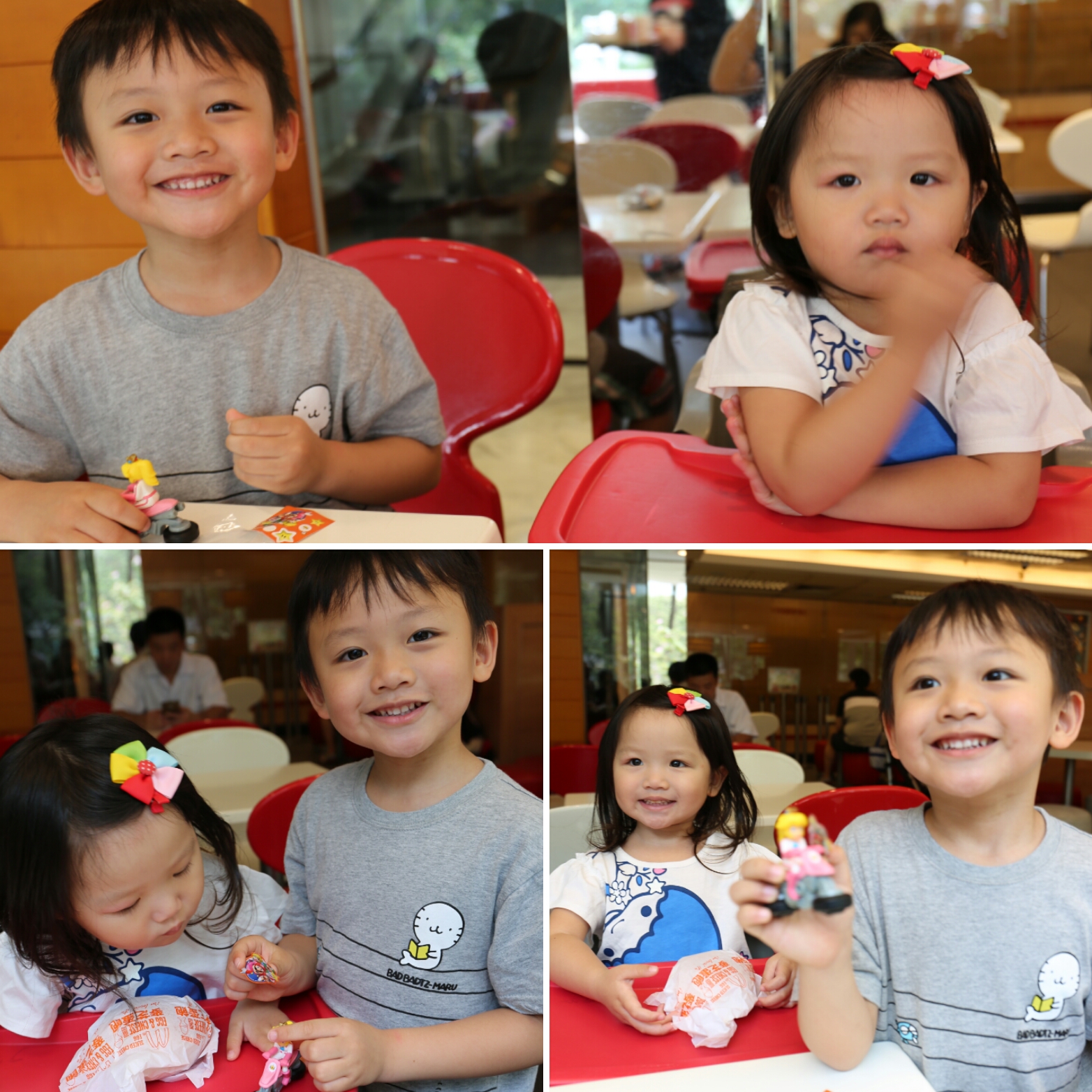 最後送上小兄妹遊館前的打底午餐照(小孩就是愛開心樂園餐!!),以及遊館後的Chloe玩樂照。Matthew呢?呵呵,與 Sanrio 角色玩樂互動完畢,他接著要找周公囉~
