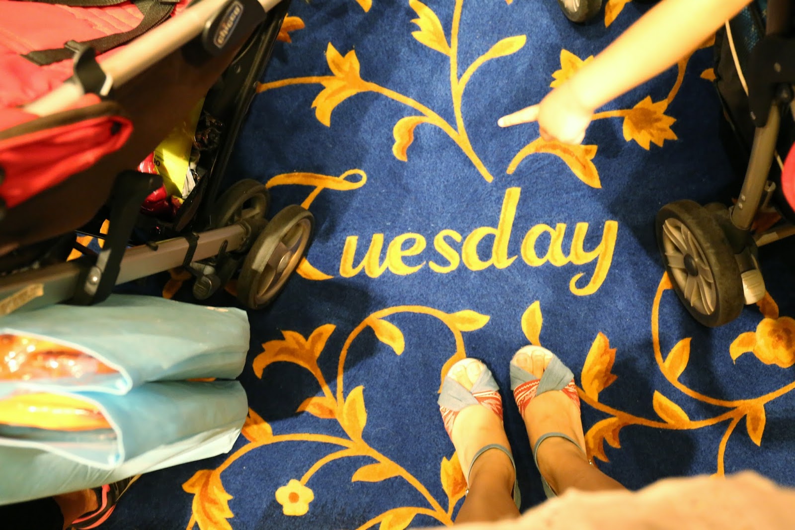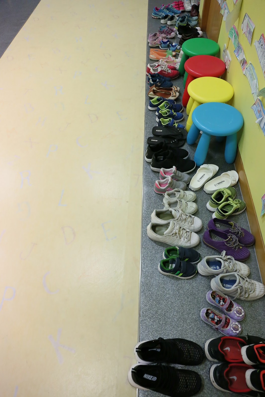 Chloe由嫲嫲帶著到3樓上堂,媽媽就帶著Matthew到地下課堂上課。其實Matthew就讀的幼稚園也算大了,但一進到課室,完全不能比,至少有千多呎地方,地方超大超大啊!可惜課室及上堂過程不能拍照,進門時拍了這入口位(應是課室的1/8大小)後,相機就要收好了。