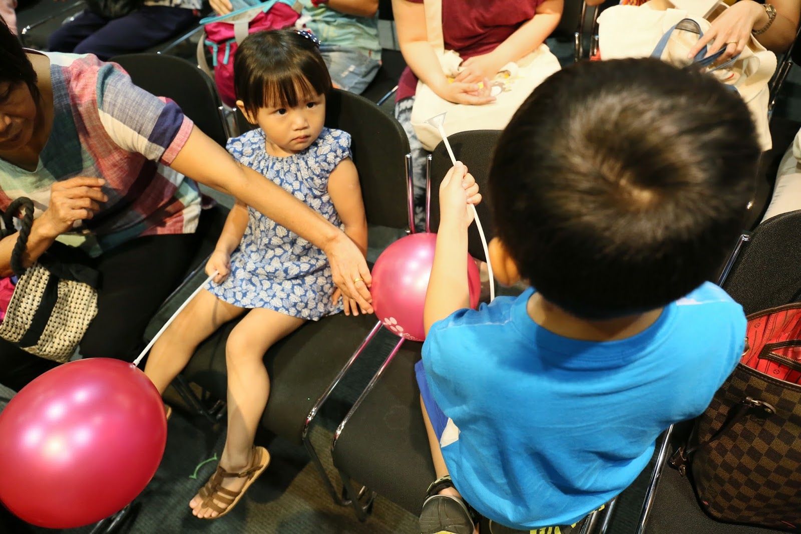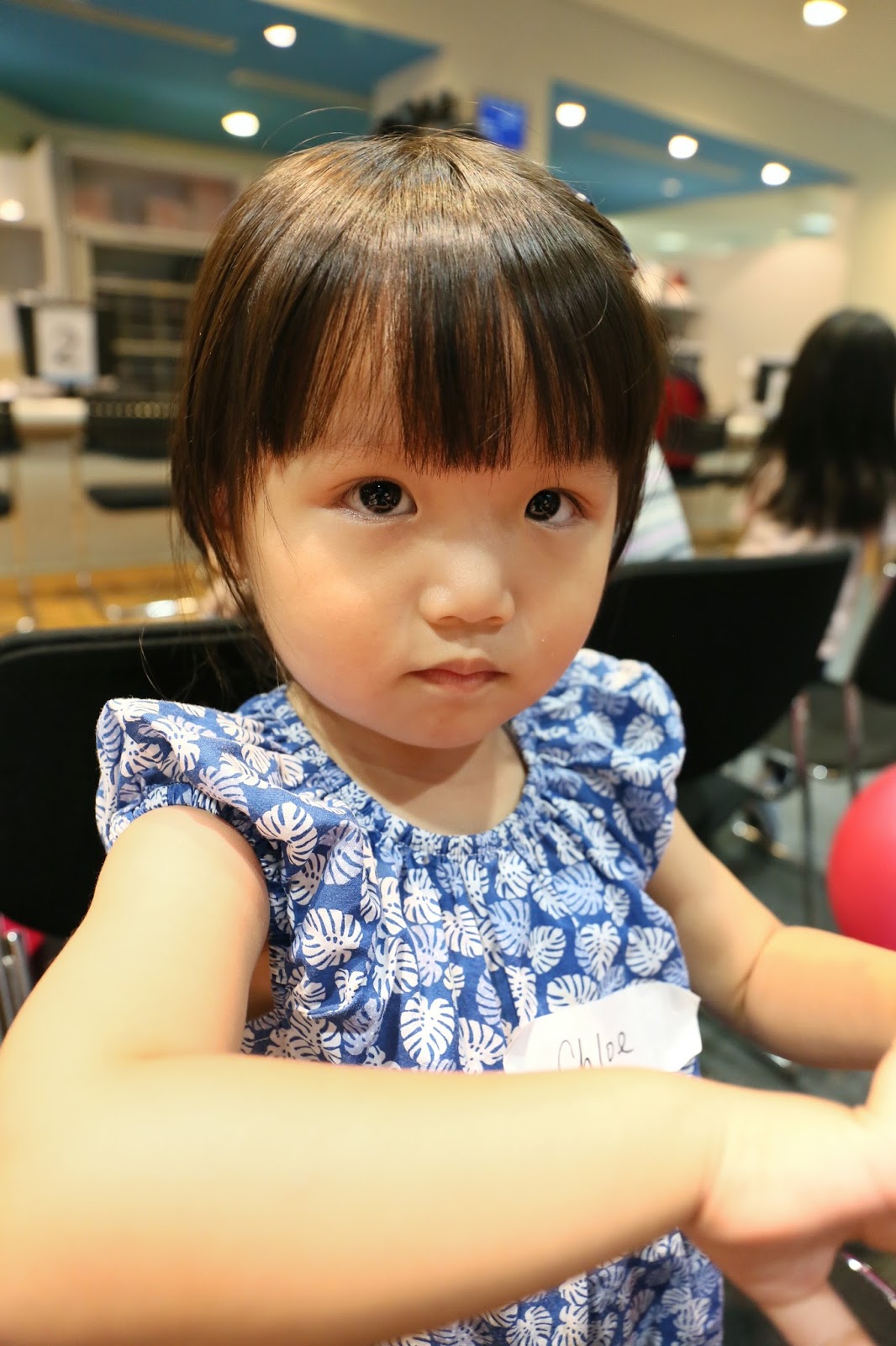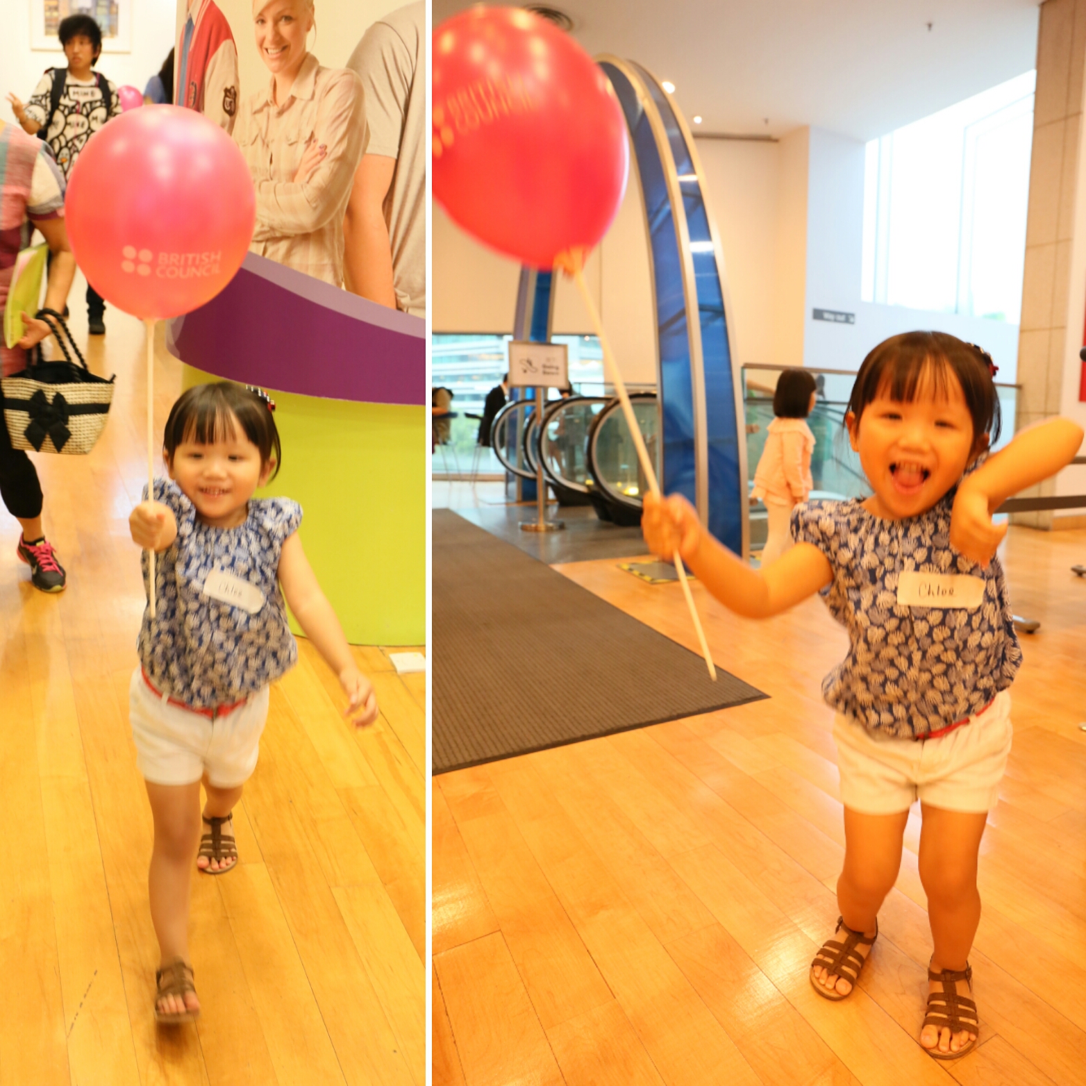 Matthew生性超好動像馬騮,不過對著老師他完全是另一個人,這天的表現也算很乖,間中也會發言及舉手。試堂大概是45分鐘,之後小朋友就可以拿汽球,慢慢穿好鞋子離開課房。一出來,就見到超興奮的Chloe!興奮得照片也拍不清楚!不過聽嫲嫲說,妹妹上堂時可是一粒聲都不敢出,看來她欺善 (爸媽及熟人) 怕惡 (老師) 的程度比哥哥更甚~ -_-"