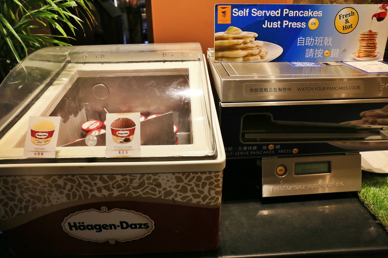 最後加上4-5款口味的 Häagen-Dazs 迷你雪糕杯,自助班戟站,終於將食物介紹完畢!