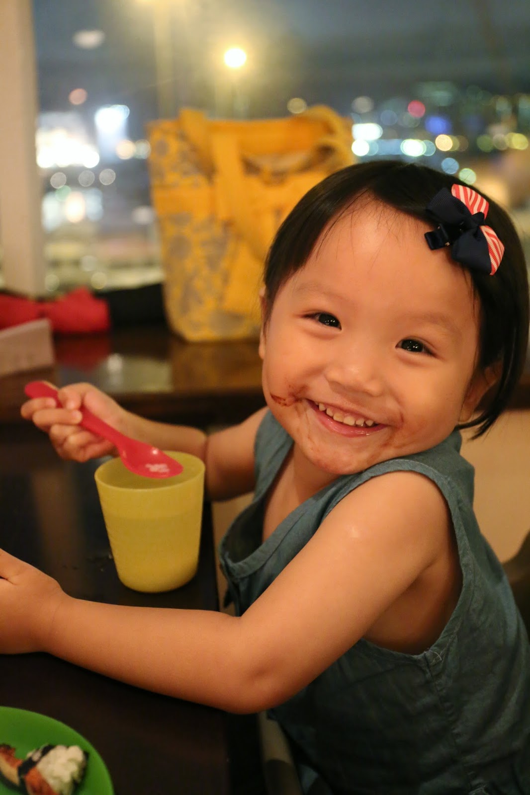 爸媽都吃飽、沖了茶慢慢嘆之際,又到小兄妹發力:二人各自取了朱古力噴泉,又拿了更多 pancake、芝士來吃;見到這甜笑的污糟貓妹妹,就知她有多滿足!週一至四晚餐成人 $528 / 小童及長者 $328(週五至日及假期 +$30),9月30日前匯豐卡最多有75折,食得過呢。