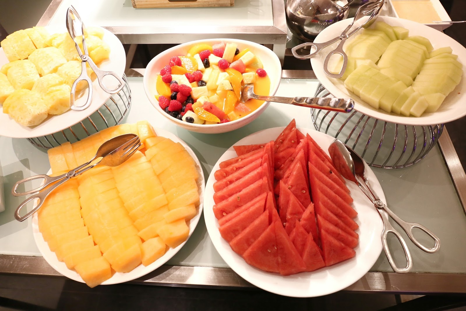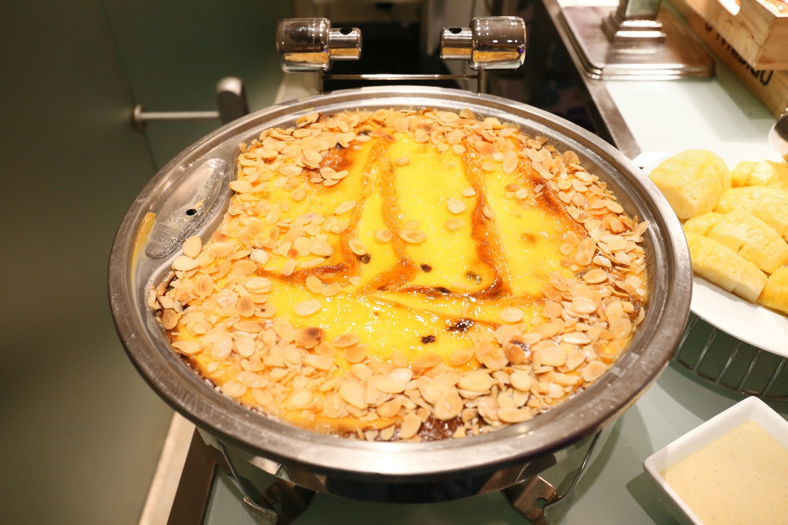 去到甜品環節。首先是幾款切件水果:西瓜、哈蜜瓜、蜜瓜、菠蘿、鮮果沙律等,也有原個麵包布甸,拌上雲尼拿汁。
