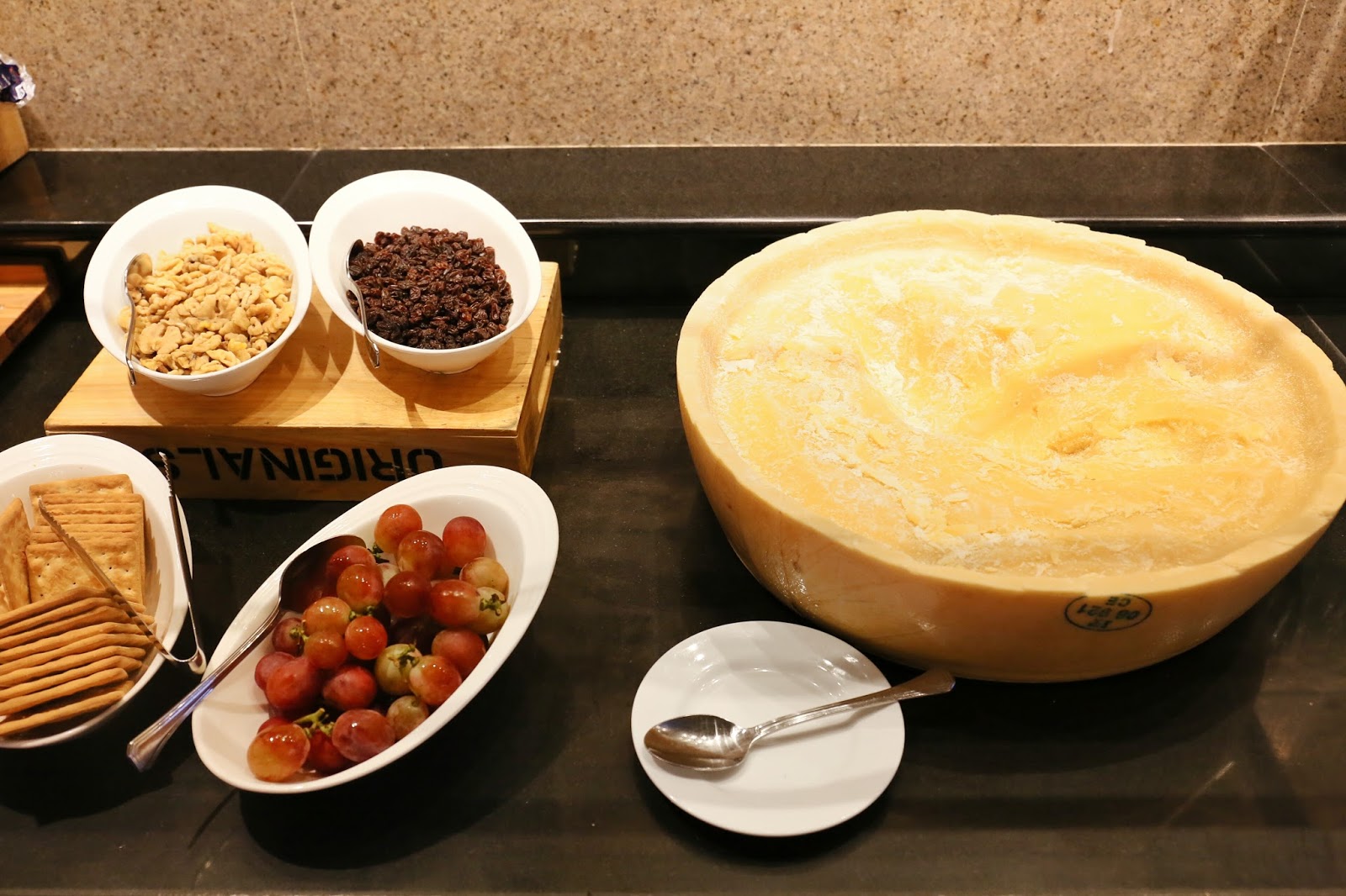 也設芝士區,有五款不同風味的芝士,也有提子、提子乾、花生及餅乾等。