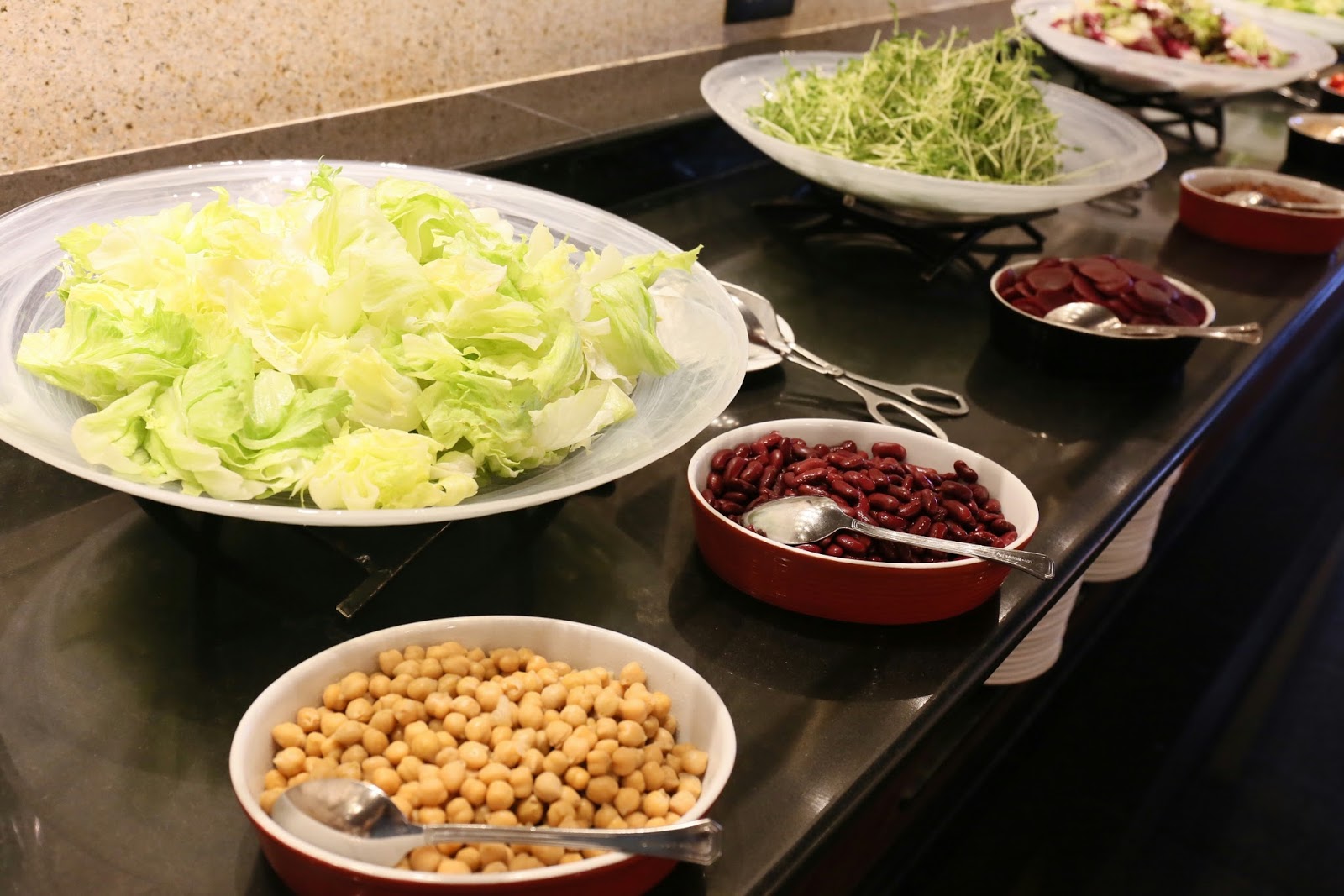 自助沙律區內基本的食材都已具備,最重要是有羅馬生菜、麵包粒及凱撒沙律醬,我又可以製作凱撒沙律了!
