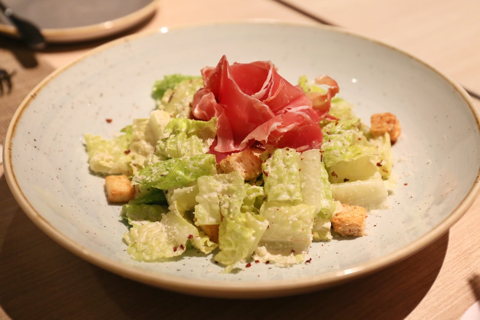 開始晚餐,頭盤我選了 Classic Caesar salad with air-cured ham 凱撒沙律伴風乾火腿,其中沙律新鮮爽口醒胃,火腿又份量十足,根本二人分享都足夠。