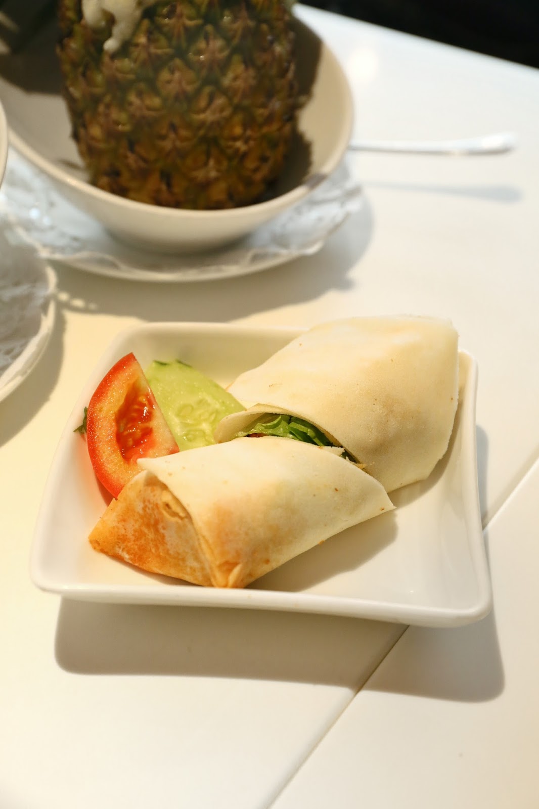 首先是套餐的 家鄉福建薄餅 Hokkien Popiah,軟熟輕薄的餅皮包著蝦肉、豬肉及大量蔬菜,而中間又加了花生蒜泥及少量辣醬,口味清新中帶辣意,十分醒胃。