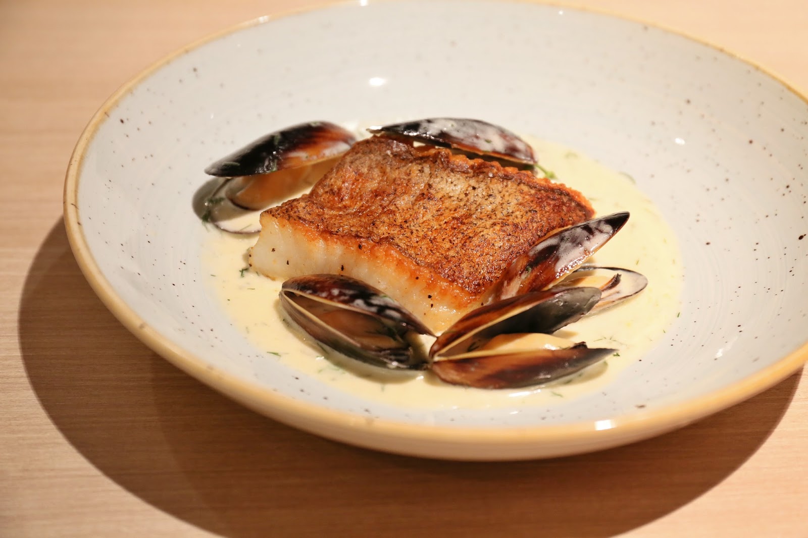 首先是 Pan-fried halibut fillet with mussel and dill sauce 香煎比目魚伴刁草青口汁,比目魚煎得很脆口,魚汁則可以再豐富些;但那嫩甜青口及香滑刁草汁就真的無得彈,非常美味,可以再給我一些麵包嗎?
