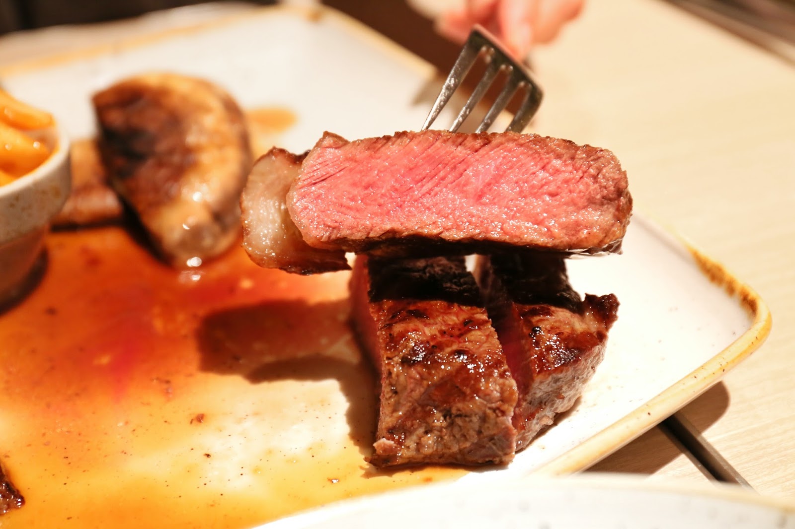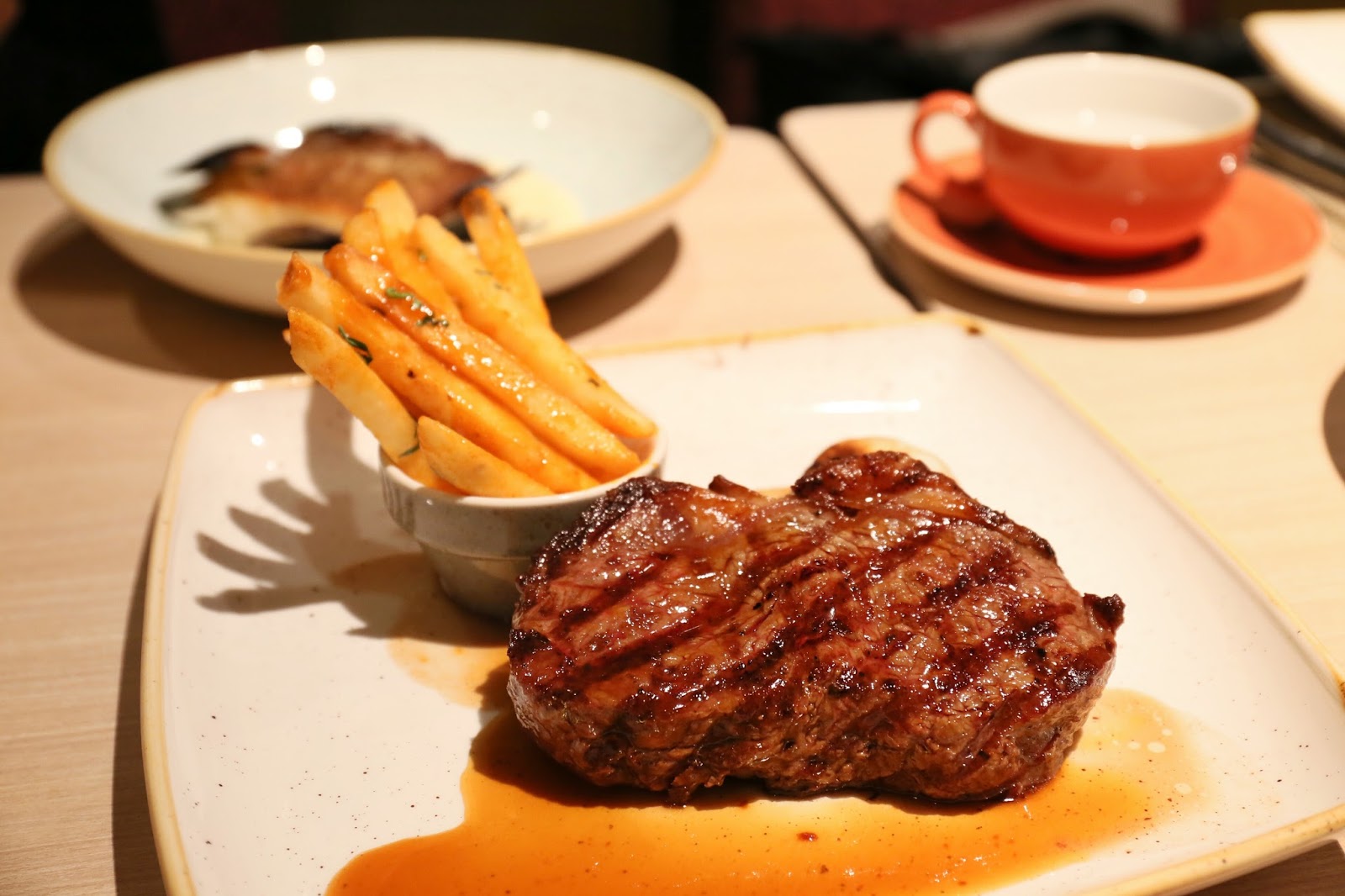 最後是加$60選點的 Char-grilled Australian beef striploin with grilled portobello and special fries 香烤澳洲西冷牛扒 (10oz) 配烤野菌及特色薯條,牛扒肉味香濃,不過火候稍比要求的五成熟了一點;而配菜除了味帶酸辣的香口薯條,還有美味多汁的香烤大蘑菇呢。