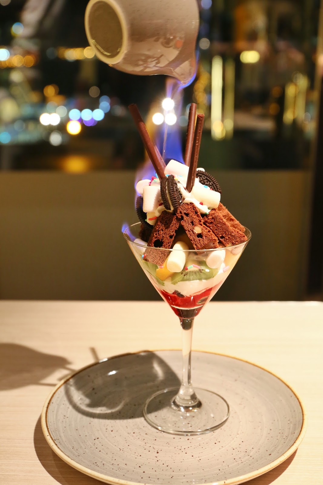 但其實,另一選擇的 Chocolate brownie with marshmallow and yoghurt ice cream 棉花糖朱古力布朗尼配乳酪雪糕 更是誠意與份量都是十足十:以馬天尼杯盛起棉花糖、朱古力 brownie 及乳酪雪糕,上檯後點起火焰,視覺效果一流啊!