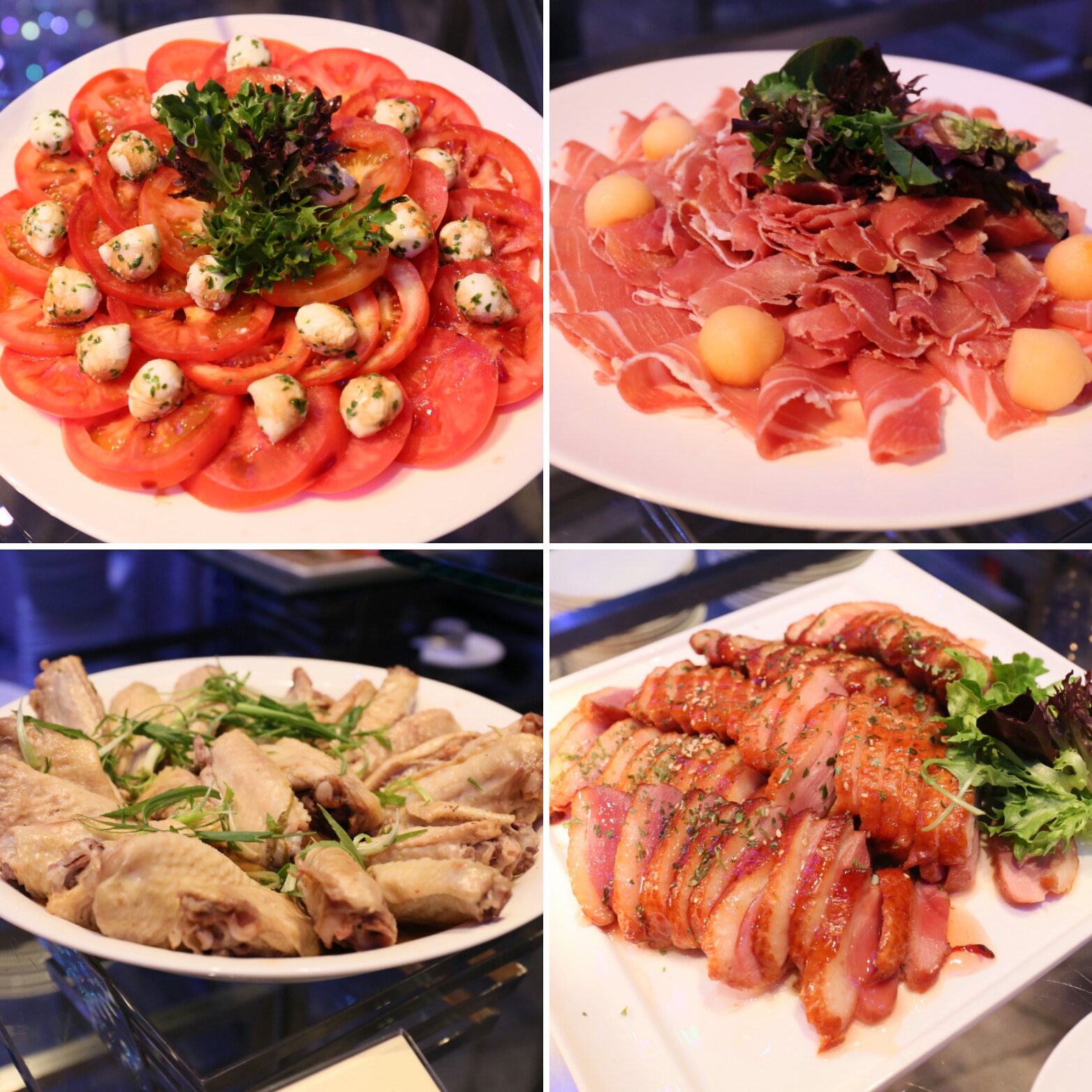 食物排列當然與 The Market 有所不同,但其實都是同一廚房出品,質素有保證。冷盤有自助沙律吧、薯仔沙律、大蝦鮮果沙律、水牛芝士粒蕃茄片、巴馬火腿拌蜜瓜粒、客氣鹽焗雞翼,以及煙鴨胸等等。