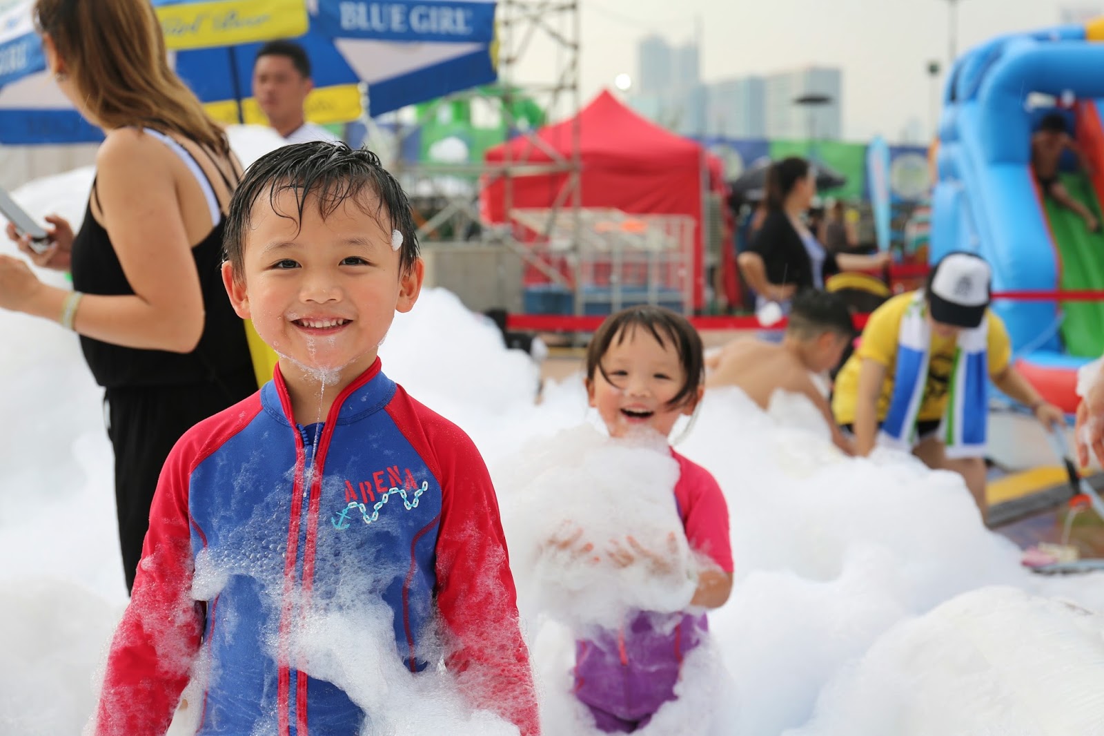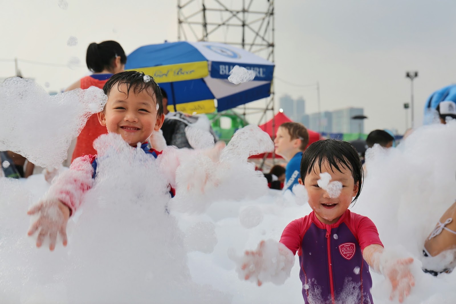 玩完 Bubble Pool,會有專人幫忙沖身,再去玩其他地方。臨離開前也有這樣的沖身裝置,但獨立 shower room 就沒有了,廁所也是流動廁所。另外場內有不同的樂隊演出,亦有不少食物/飲品攤,只是吃太飽的我們沒光顧了。