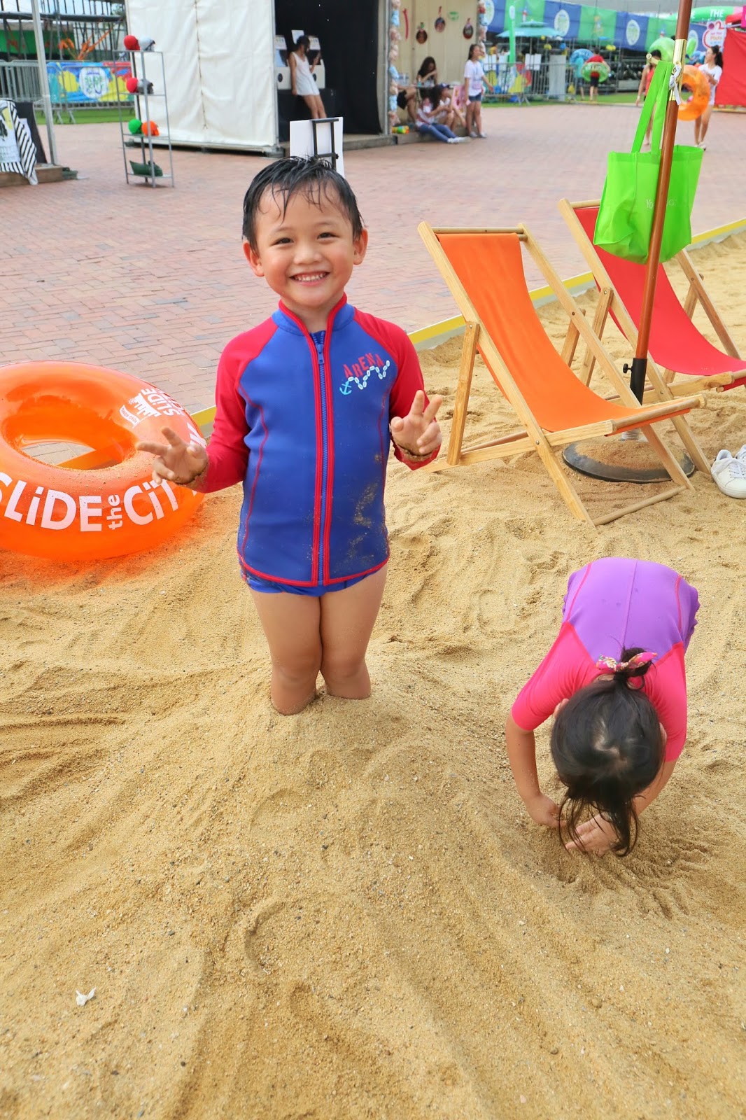 玩水/玩沙是相機的大敵,所以今篇能分享的照片很有限;簡單分享感受,最長的 Slide the City 的確幾刺激好玩,尤其單人玩旋轉感很強,不過帶著Matthew(身高117cm就可以玩)當然就要扣著玩,會平穩很多。感恩當日天氣不熱、人也不多,我們可以滑了又滑!