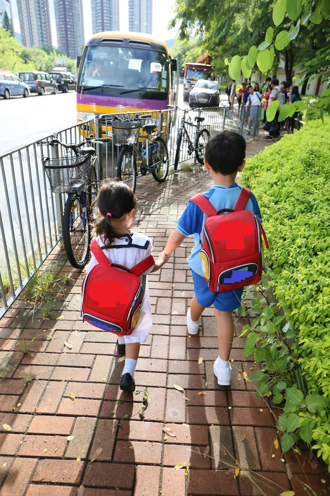 來到今天,兩兄妹轉為獨立上學了!不過Chloe上兩小時課程,Matthew就上足三小時,9月12日開始才回復一致。由於兩兄妹一起搭校巴上學,早上妹妹也沒有不捨,場面還十分溫馨!