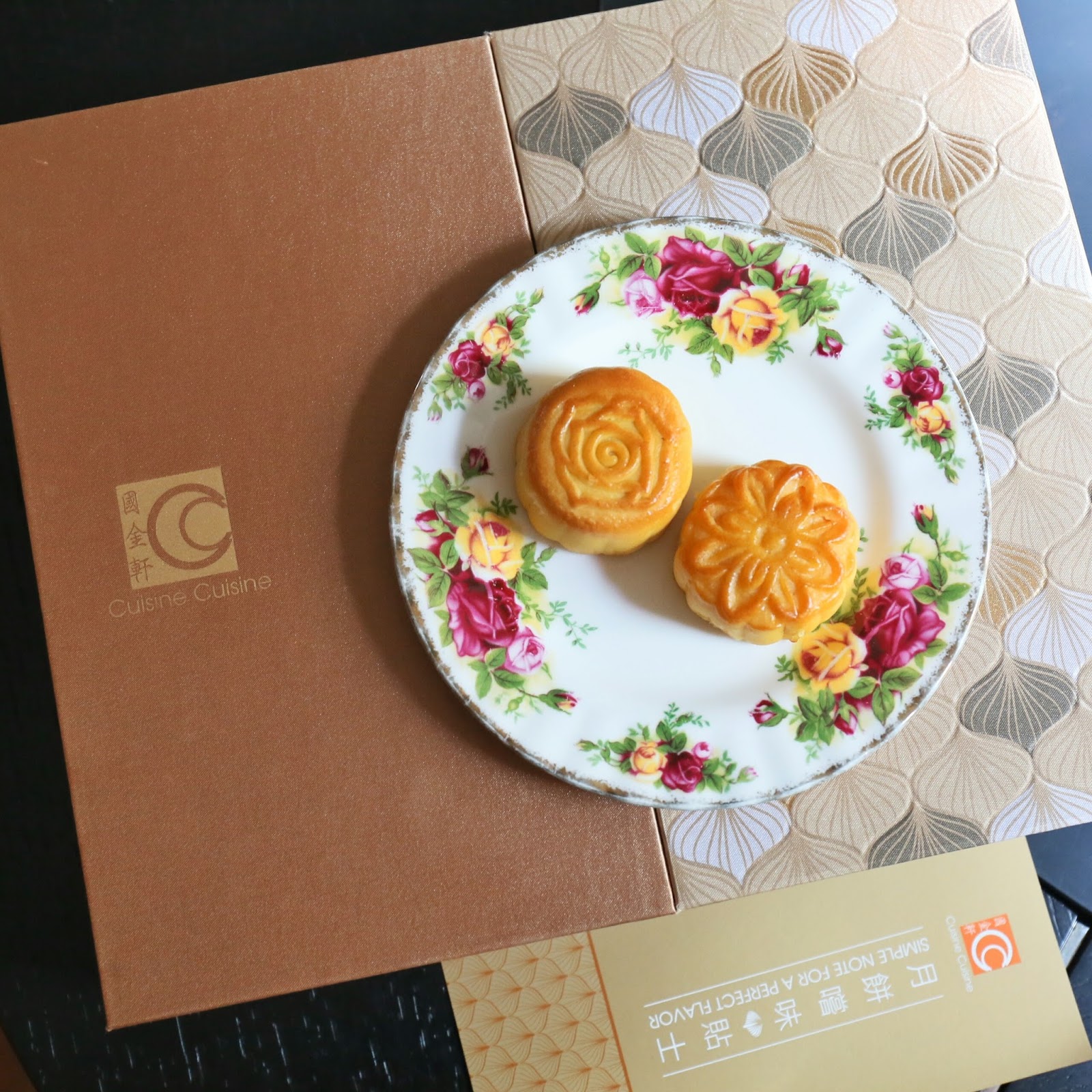 最後,順帶分享個多星期收的 國金軒月餅:今年包裝很美,口味包括迷你奶皇月餅、酸甜別致的玫瑰醬洛神花迷你月餅,以及不太甜的有機龍舌蘭蜜蛋黃低糖白蓮蓉迷你月餅。除了奶黃月餅比較常見,後兩款都各有特色,紅粉緋緋的玫瑰醬洛神花月餅尤其漂亮迷人!