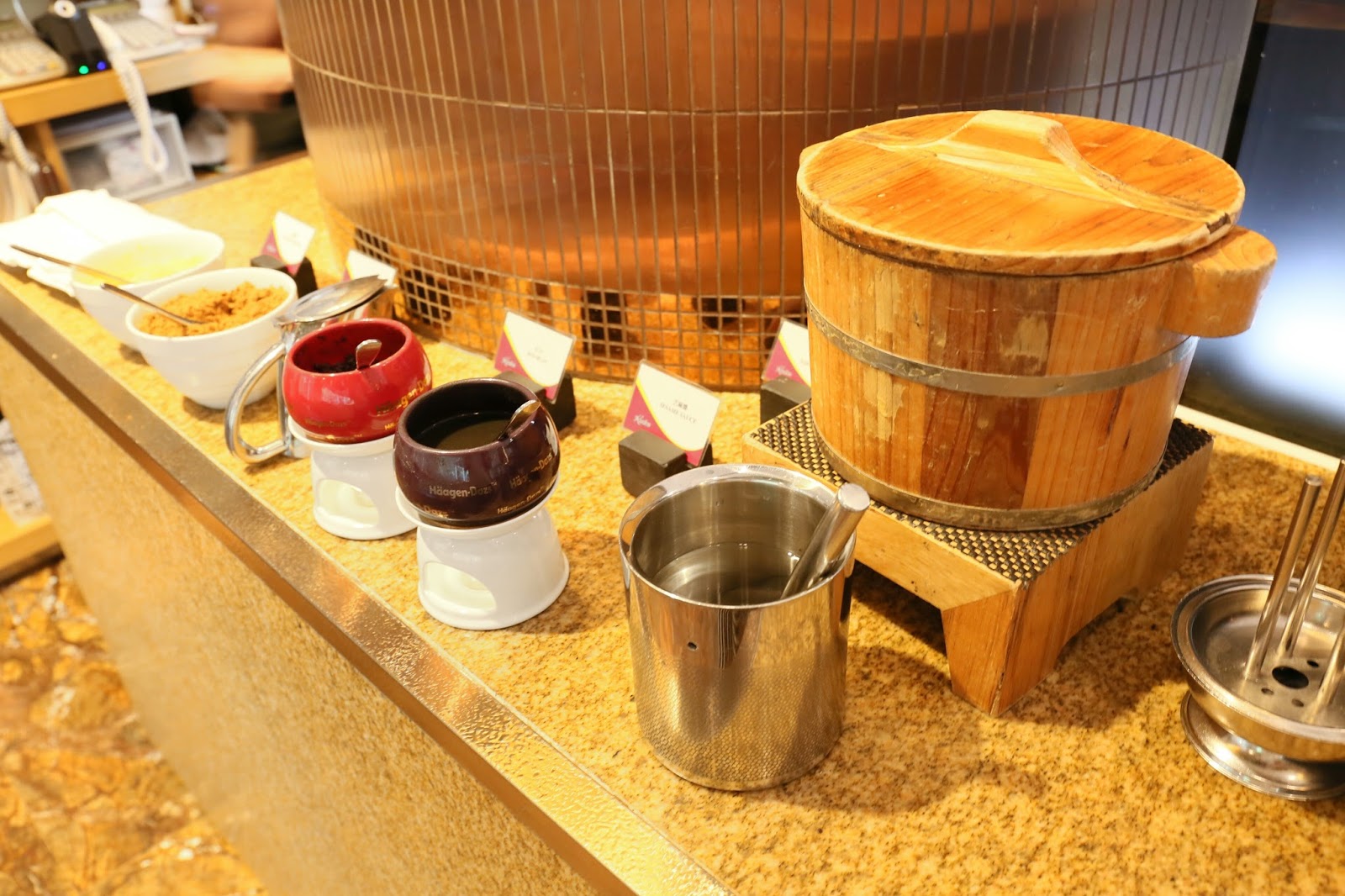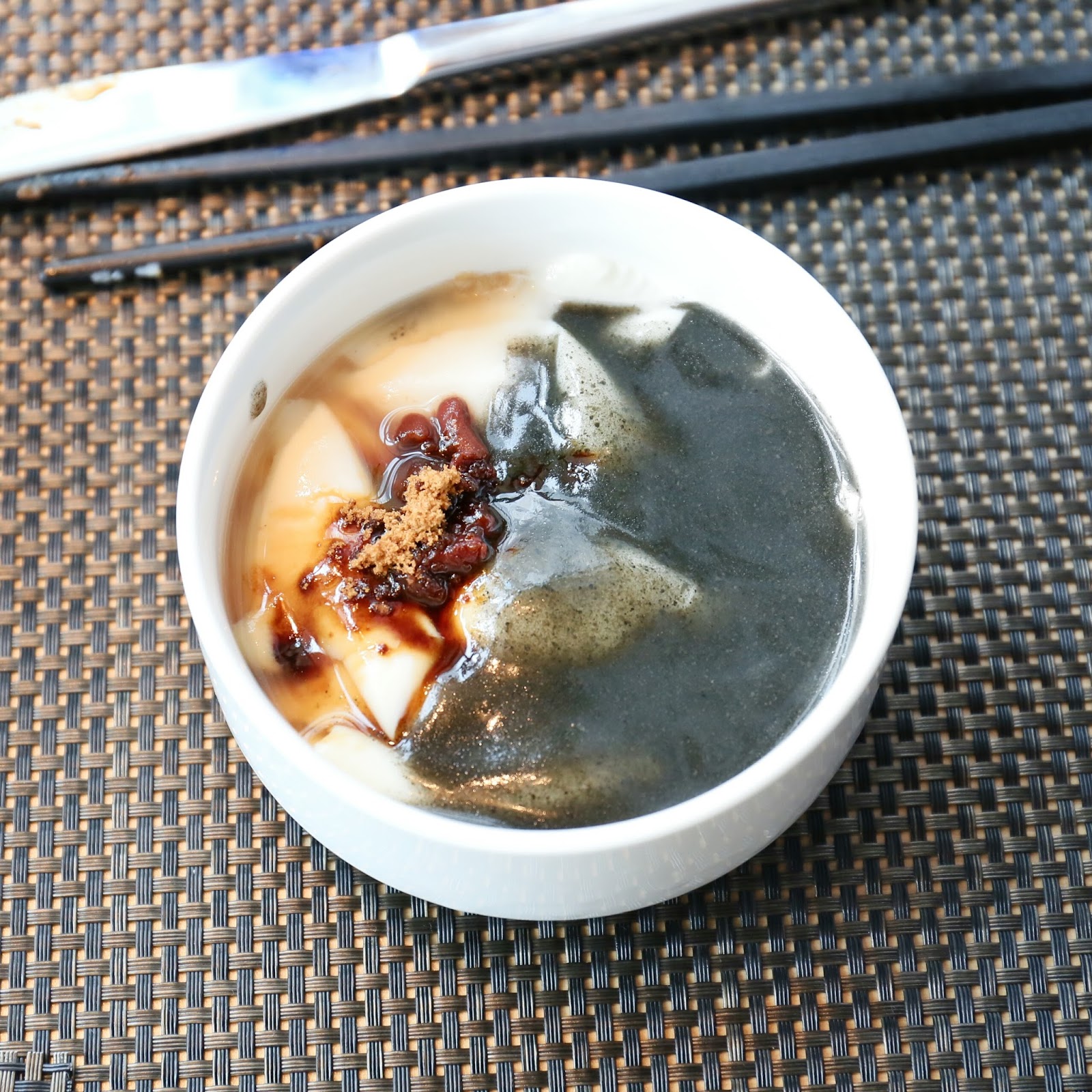 然後看甜品區。下午茶也保留了滑滑豆腐花,而且除了常見的黃糖及較少見的黑糖,又有紅豆及芝麻醬當配料!