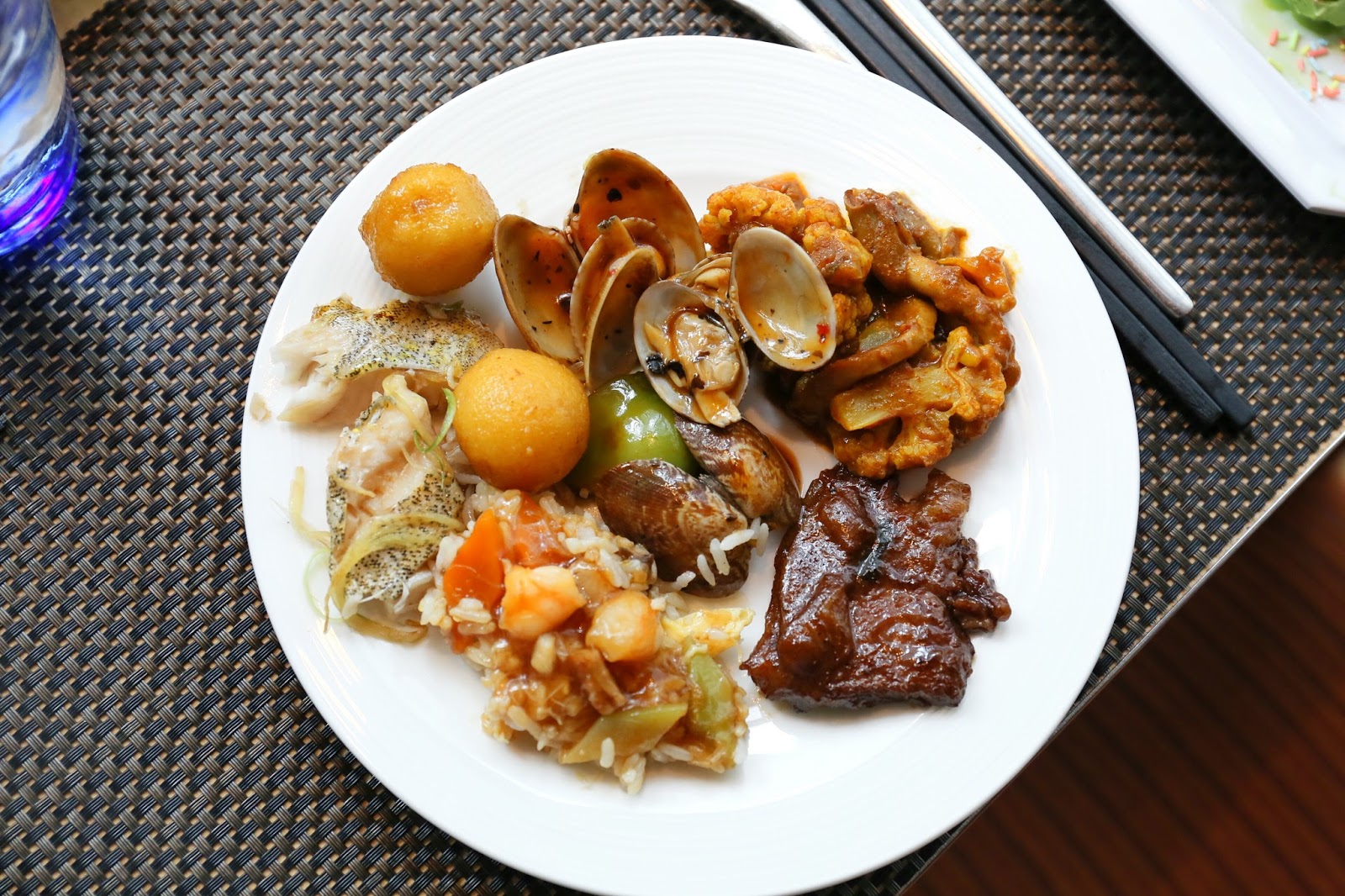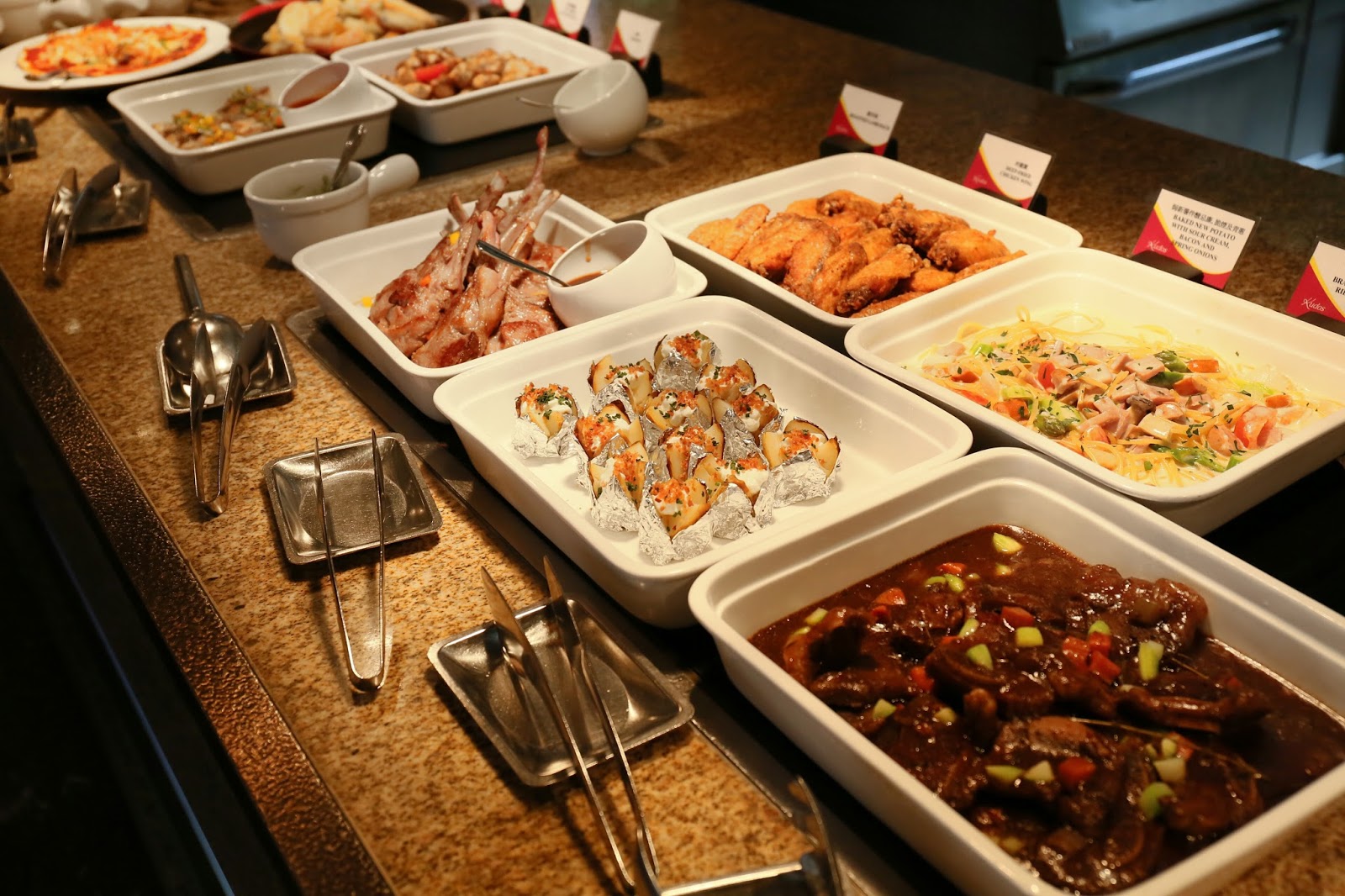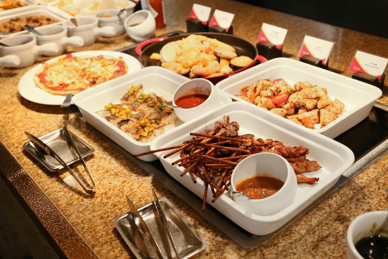 熱盤選擇更是多不勝數:薄餅、烤鱸魚、天婦羅、燒雞粒、烤羊架、燒雞翼、酸忌廉焗薯、芝士腸卡邦尼意大利麵、黑椒牛仔骨、炸蝦片、印度薄餅、咖哩牛、咖哩雜菜、沙爹串燒、西蘭花、豉椒炒蜆、星洲炒米、福建炒飯、清蒸海上鮮,等等,分分鐘比不少 buffet 的晚市更豐富!特別一提,這裡晚市是半自助形式,故下午茶反而可一次過試到更多款式~