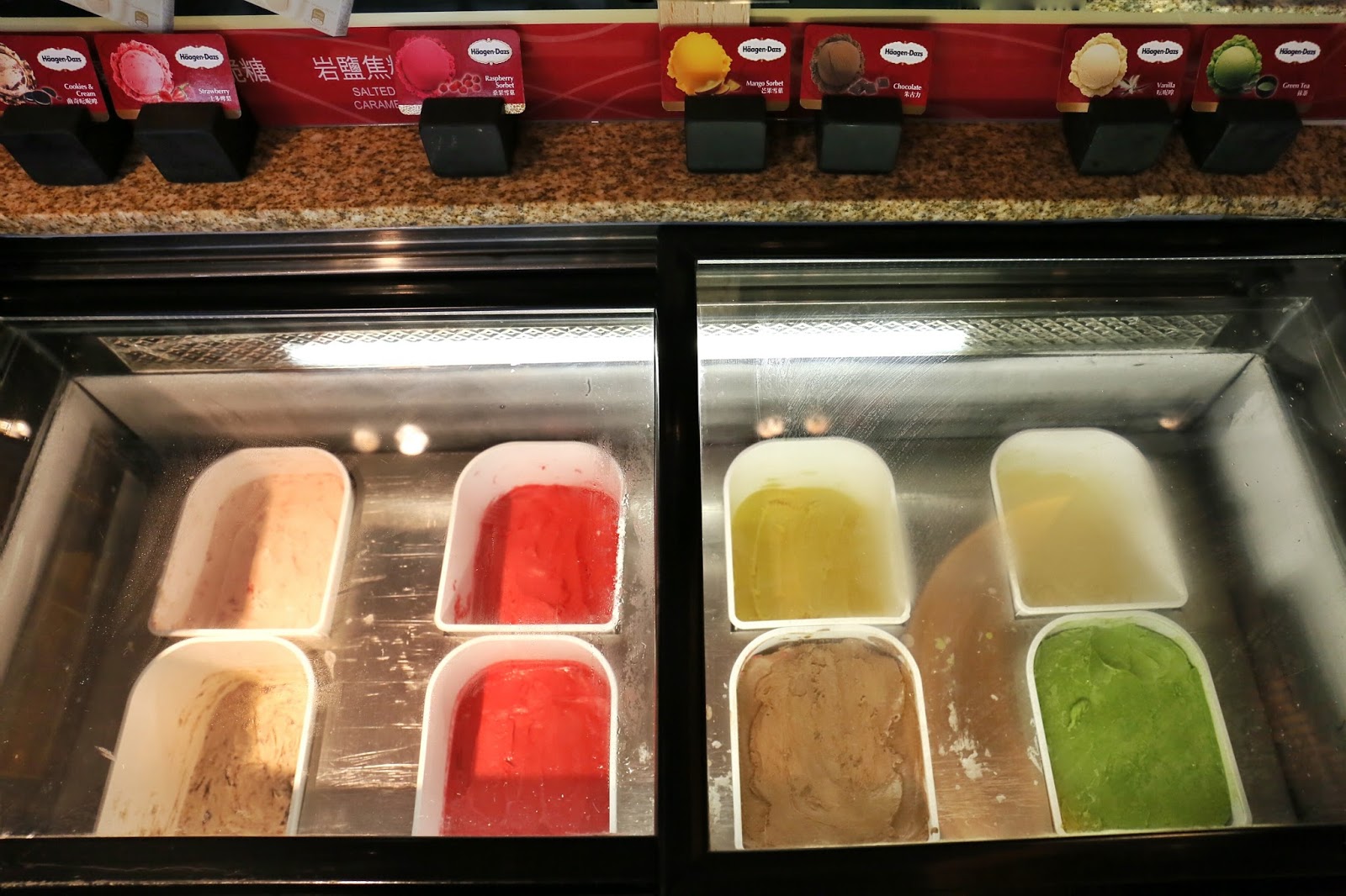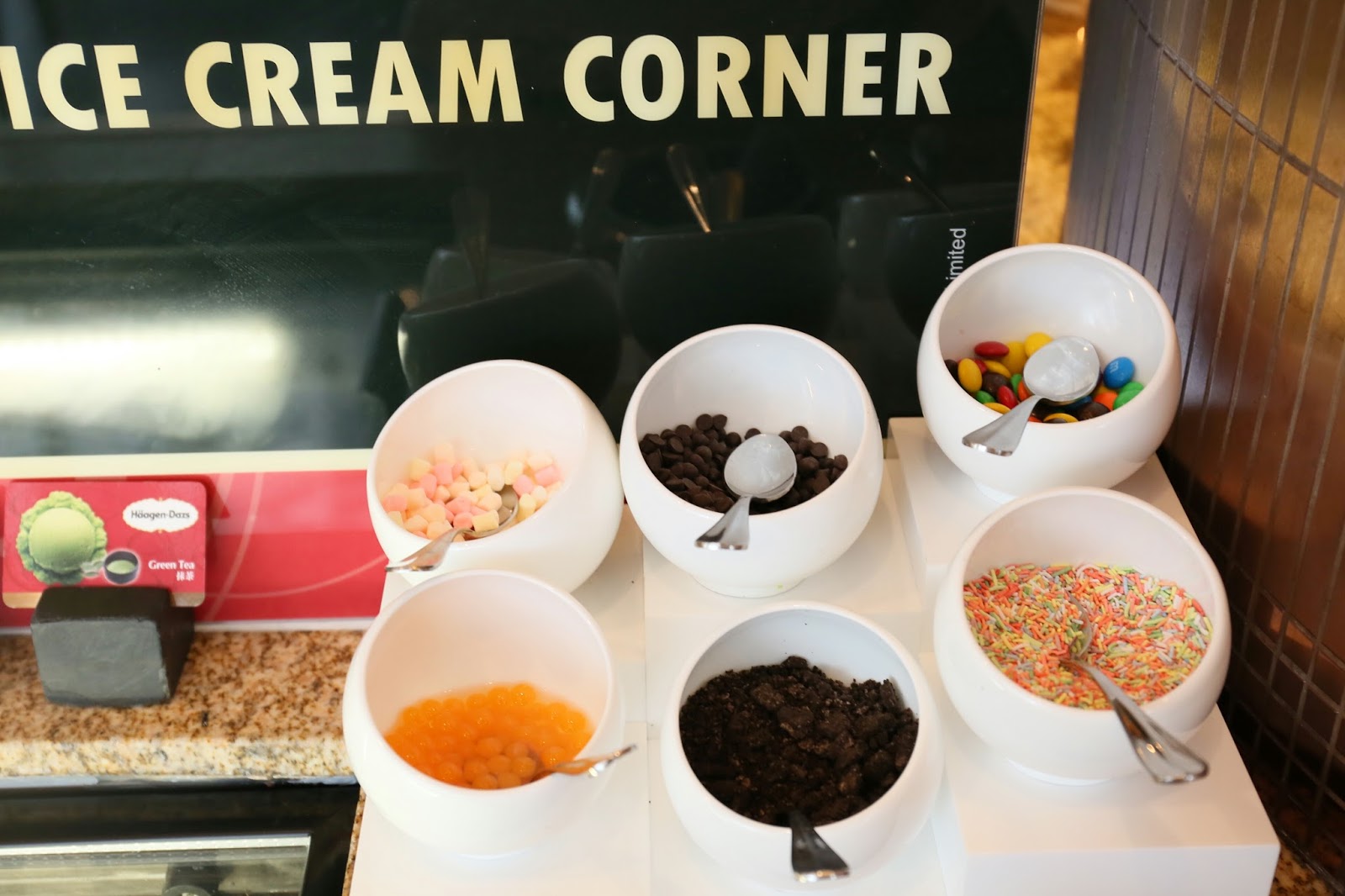 不過以上甜點,甜魔媽媽也未能全部品嚐,因為要留肚給這個激動的雪糕櫃啊!一共有七款口味,配上不同的配料,更添繽紛,大人小朋友都一定會好喜歡的~