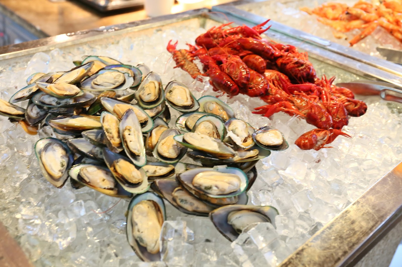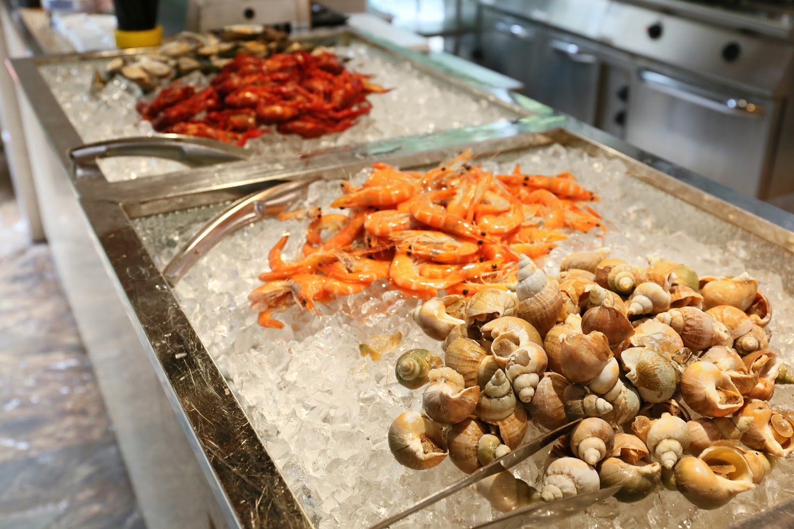 下午茶自助餐也有凍海鮮?你沒聽錯,雖然龍蝦、麵包蟹不復見,但場內也有翡翠螺、海蝦、龍蝦仔及青口供應,而且質素比早前住宿酒店的自助晚餐更好。