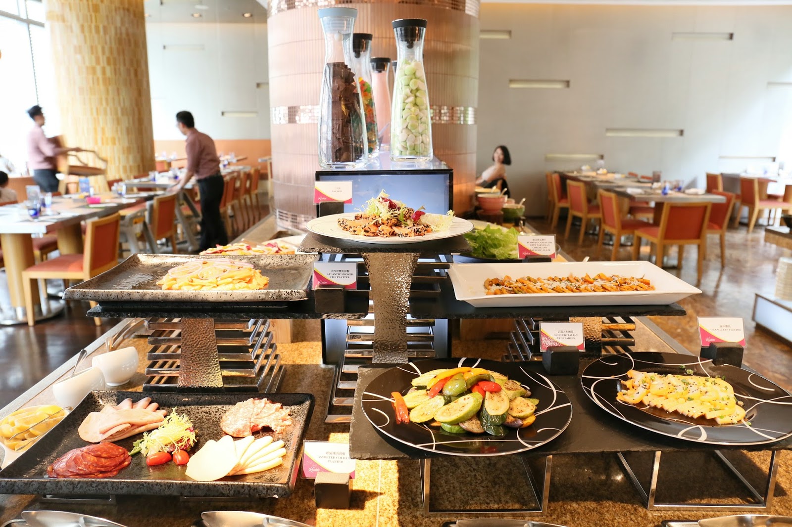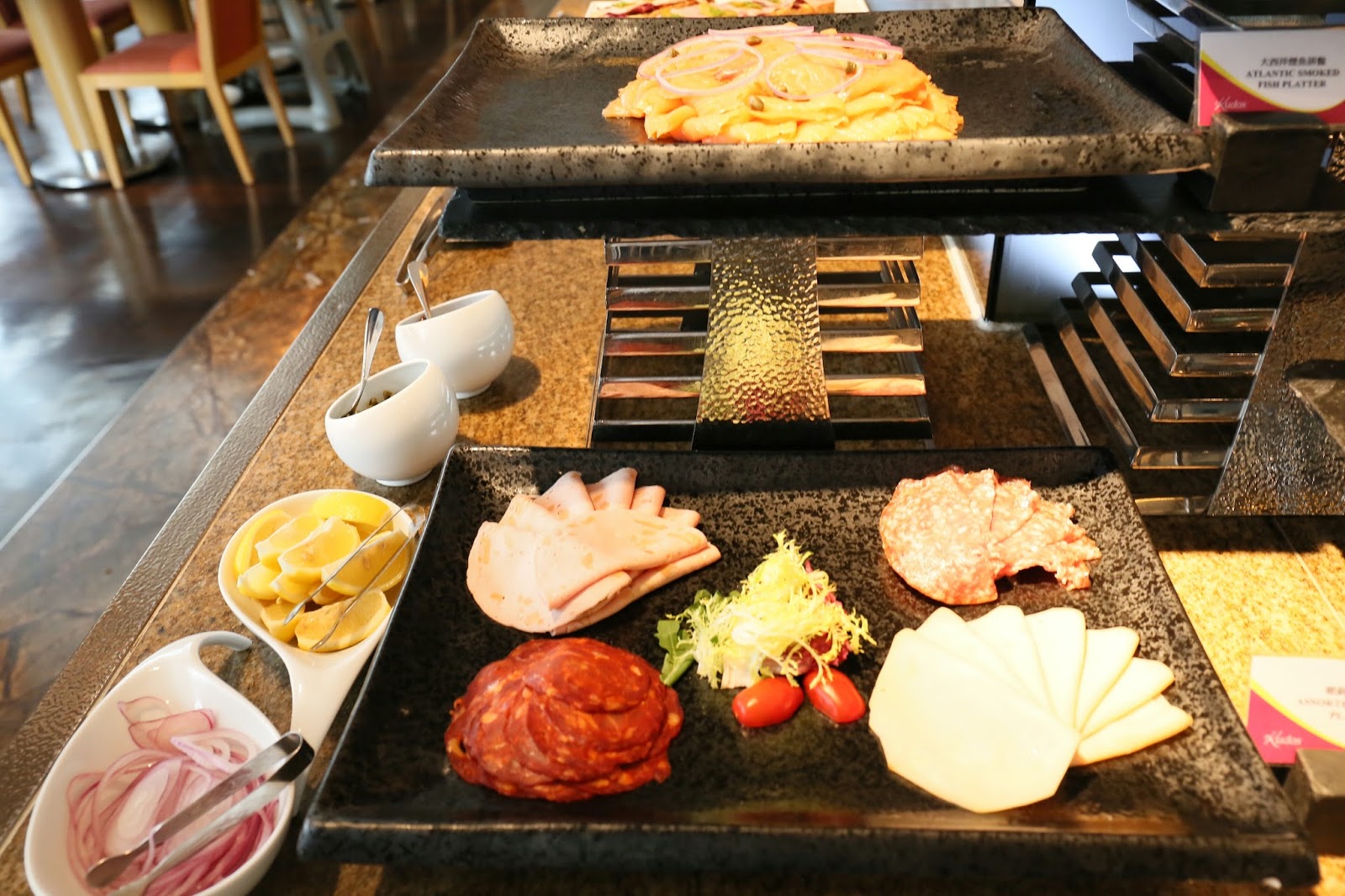 冷盤及沙律選擇繁多,凍肉併盤、煙三文魚、南瓜沙律、火腿多士、林林總總;其中最喜歡是芝麻半熟三文魚及滷水魷魚,口感出眾;另外辣肉腸很夠辣勁,也愛吃~