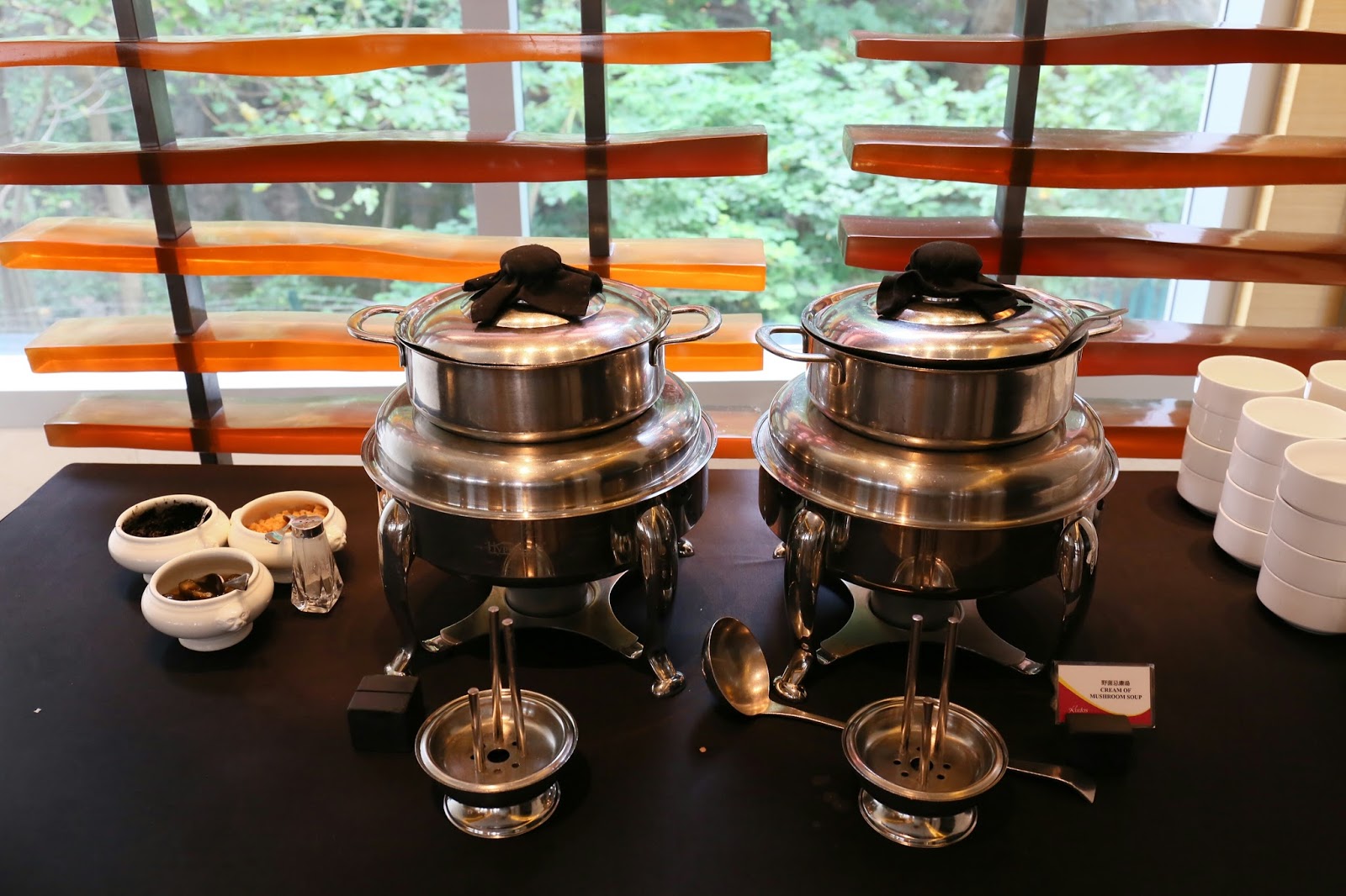 然後開始看熱盤:入口位擺著野菌忌廣湯,以及雞粥,不過我們並無胃納品嚐了...