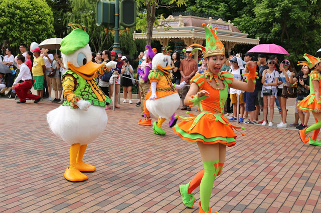 然後又有唐老鴨及黛絲,以及蒙面舞隊的舞蹈演出。沒錯,臉罩也是今年 Disney Halloween Time 的主題之一,無論是入口城牆的米妮/女巫像,還是鬼屋內,都探用這個驚異元素!
