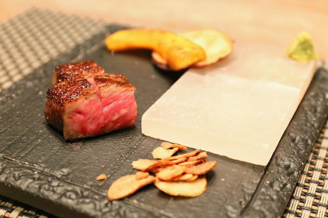 「宮崎和牛宴」由 厚燒玉子 Grilled Japanese Egg Roll 開始;很喜歡厚燒的玉子,味甜多汁,最妙是配上微帶辣意的自家製麵豉醬,份外醒胃、為之後一連六道和牛菜式打開食慾!