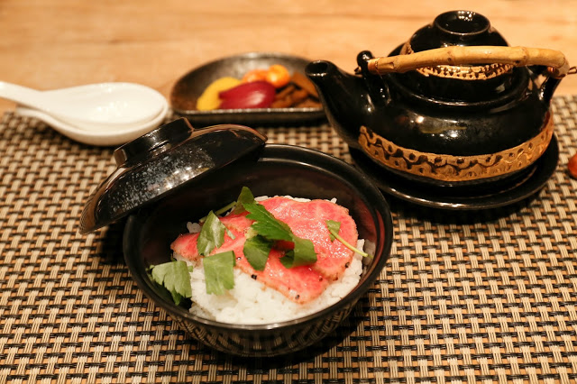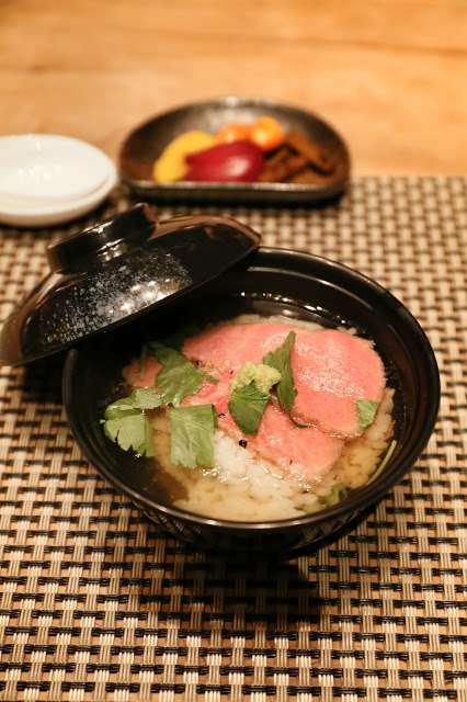 之後還有 宮崎和牛茶漬飯.漬物 Miyazaki Wagyu Beef Ochazuke and Pickles,胃口大的男生也定會滿足。去到這裡我已經很飽,只吃光了面層和牛,茶漬飯只能完成1/3,就要投降了!